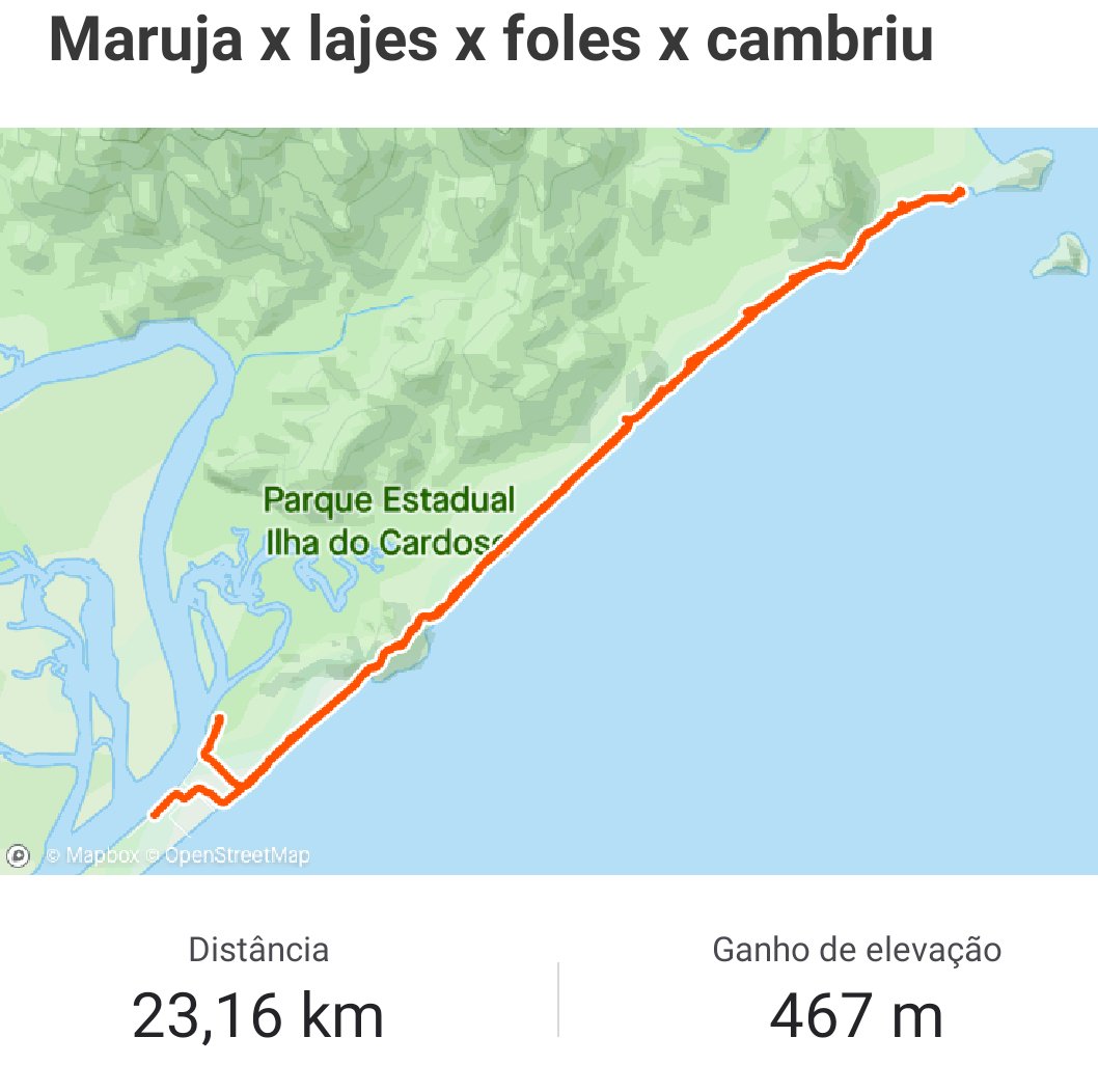 Superagui trilha da praia deserta 4km (trilha muito bonita!) + praia deserta 30km +- até a barra do ararapira (novidade no trajeto, talvez quase o maior perrengue da viagem para mim, eu aguardei esse barco acenando com espelho e camiseta colorida (estilo " a naufraga" mesmo rs) cerca de 1 hora sem sucesso!, não deu pra passar na maré alta e a chuva ameaçando vir com raios, mas não veio, quando eu desisti, comecei atravessar item por item de minha bagagem, surgiu o barqueiro Ismael e cobrou (R$50) barco até o pontal do leste que é a ponta da ilha do cardoso e pedal de +-14km até maruja, chegada 17h30, já fiz amigos logo de cara na praia, armei a barraca no camping do vlad (R$35).
