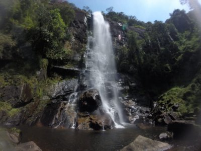 Um curso d’água tímido transforma-se num dos mais belos saltos da região. Com mais de 90 metros de queda livre.