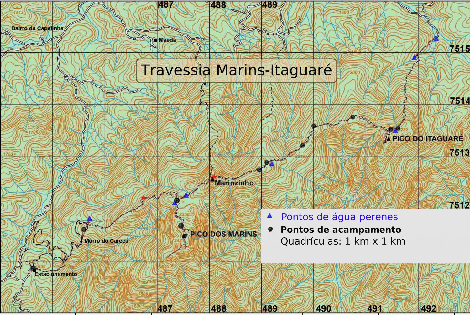 De qualquer sorte, a parte final da travessia Marins-Itaguaré segue ao longo de um riacho e água não seria problema.
