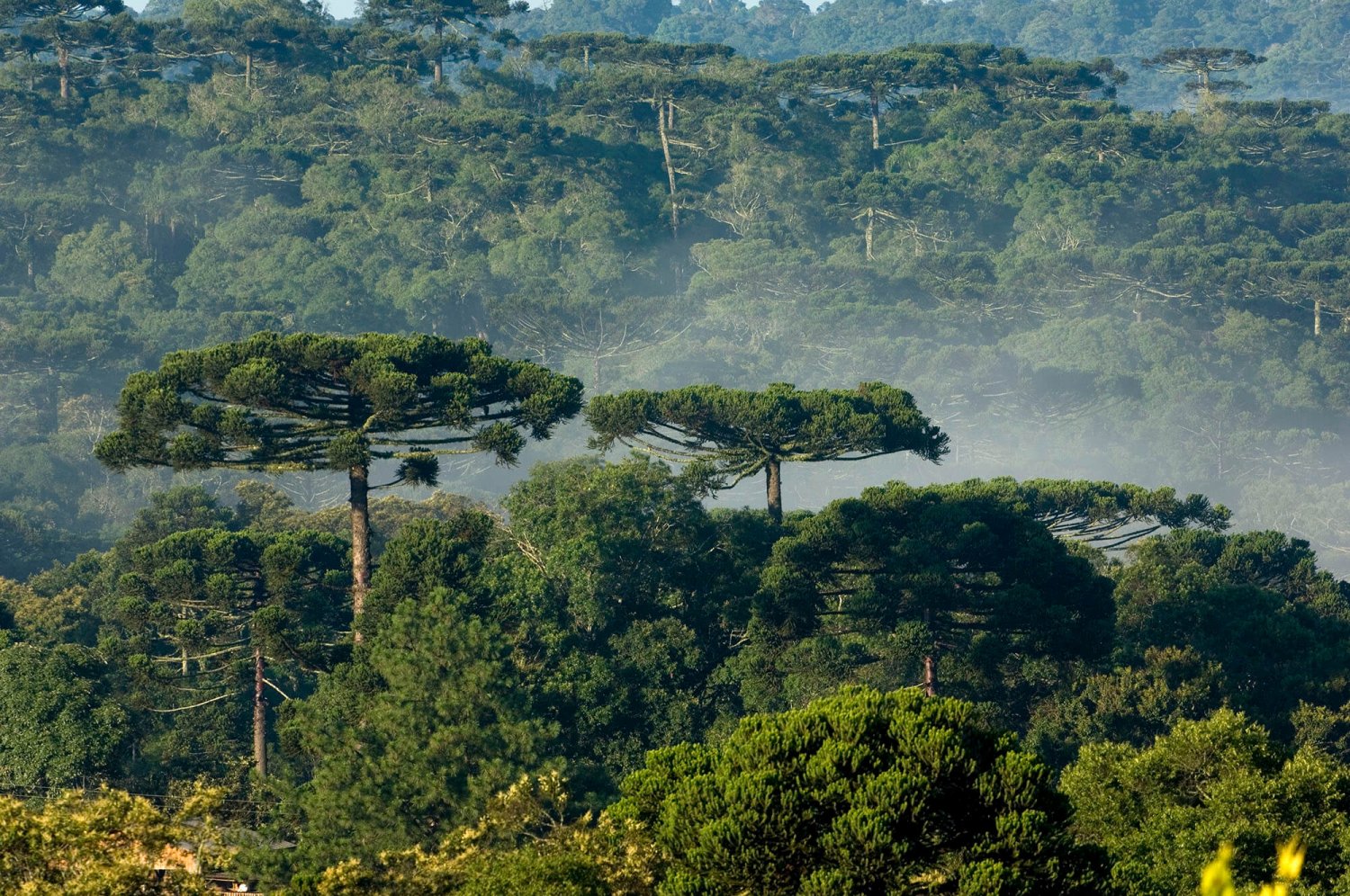 A região de ocorrência dessa floresta é bem delimitada por um clima temperado, com alto índice de chuvas e geadas frequentes. Em toda sua área de distribuição raramente registra-se menos de 1.400 mm de chuva por ano, podendo chegar a 2.450 mm na vertente oeste da Serra do Mar e nos rios Uruguai e Iguaçu. A temperatura média anual é sempre inferior a 18ºC, e a média mensal pode atingir valores inferiores a 10 ºC nos meses mais frios e superiores a 20 ºC nos mais quentes.