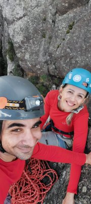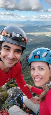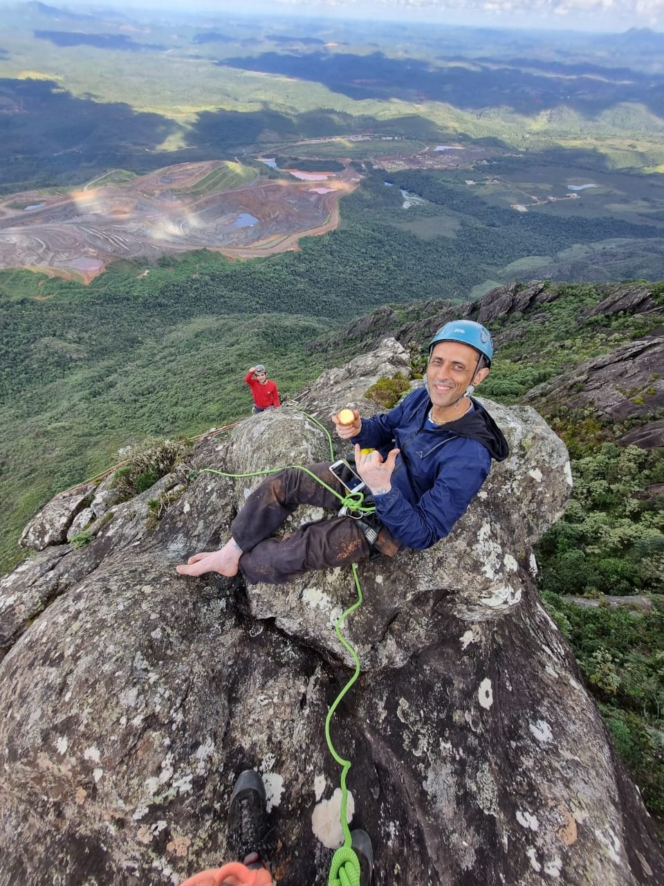 Cume do Pontão do Frade, no setor "Procissão das Almas" na Serra do Caraça, MG. Via "Tranquilidade Numa Boa" - 5° VI E2 D1