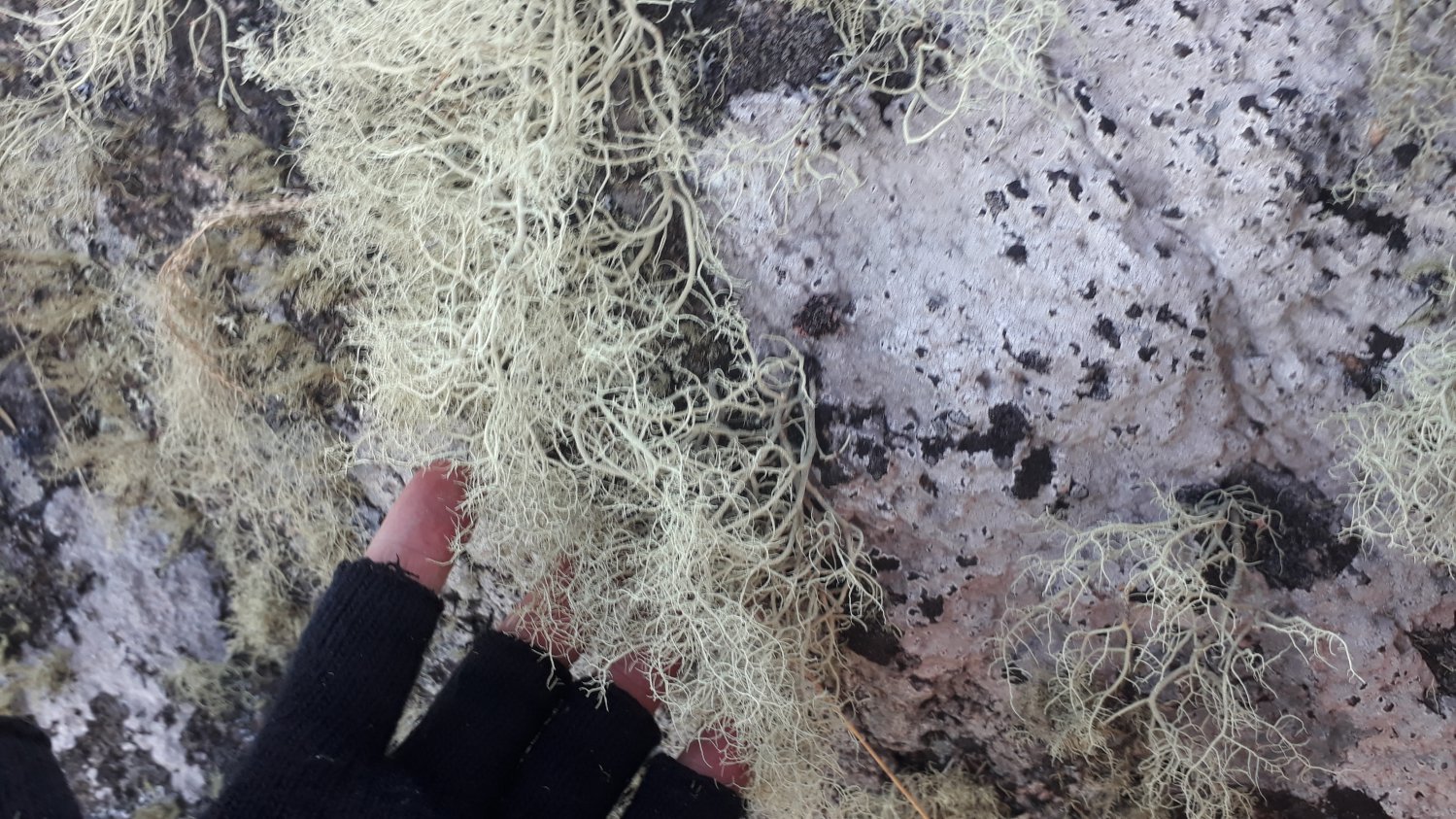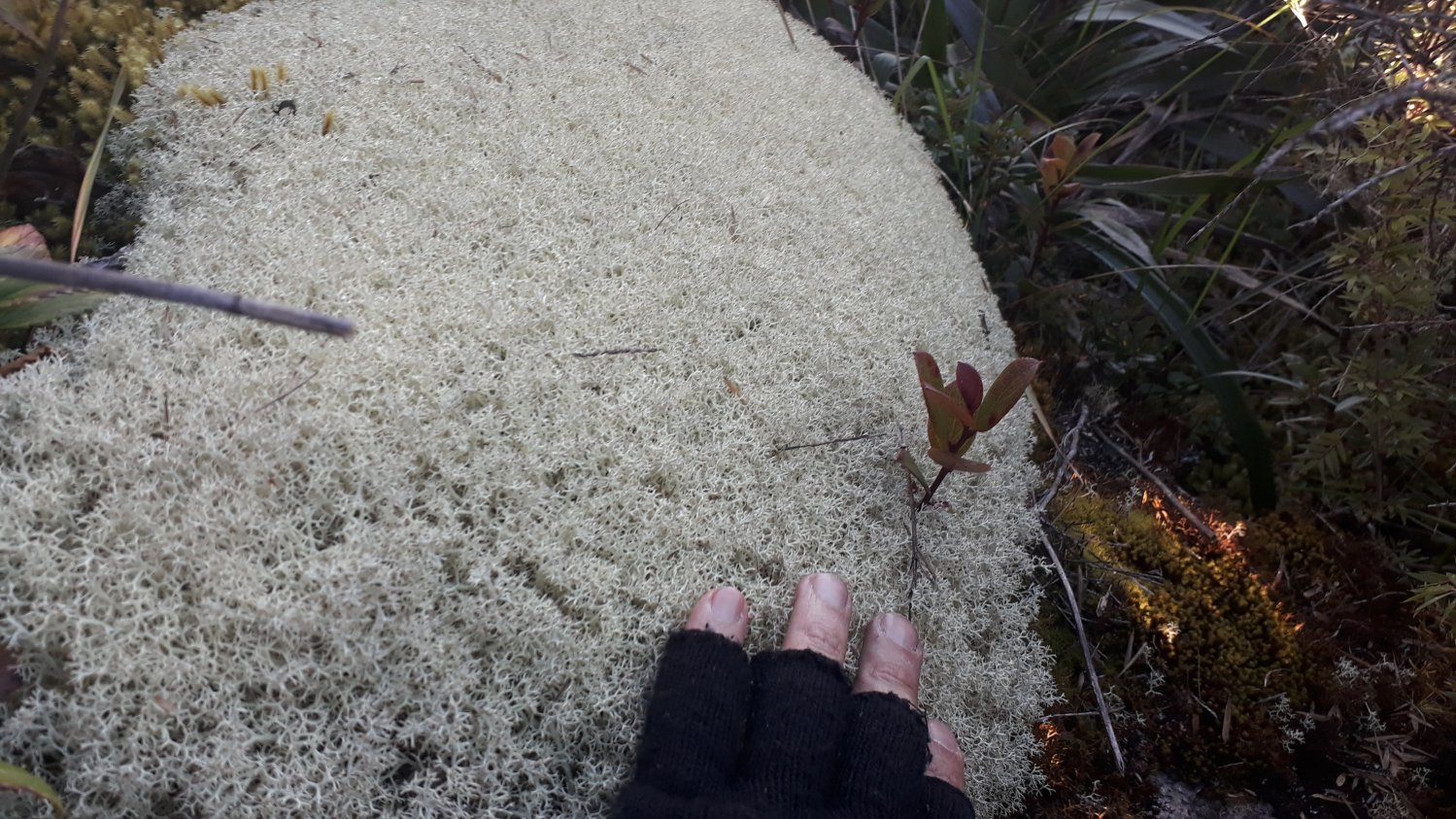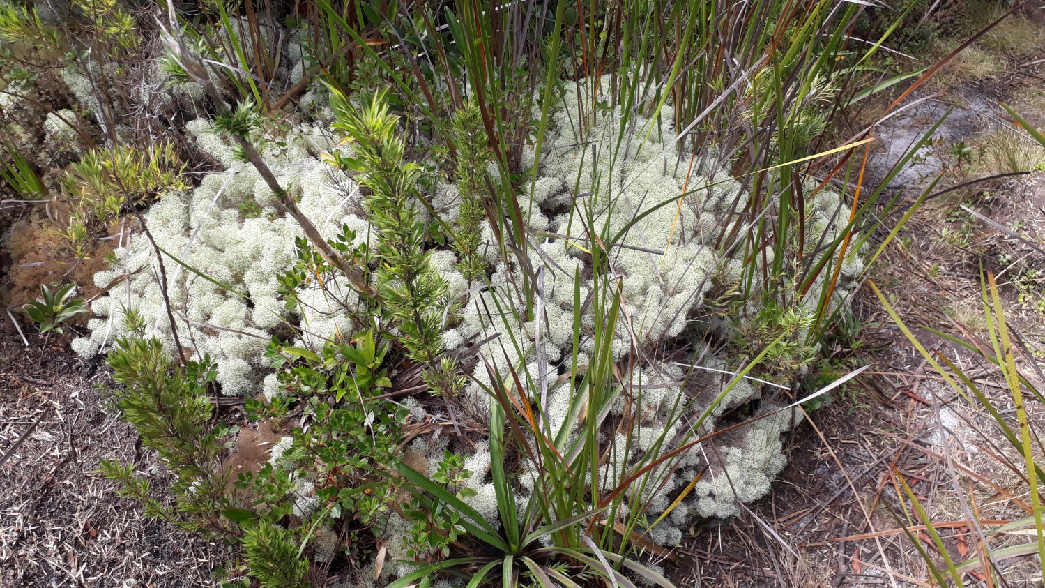 Depois de rodar um pouco, decidi por dois bambuzinhos mirrados. Eles não inspiravam muita confiança, mas era o que eu tinha pra levantar o tarp. Antes de voltar para a área de bivaque, fiquei apreciando os detalhes da montanha e a paisagem. Encontrei mais líquens e tirei algumas fotos: