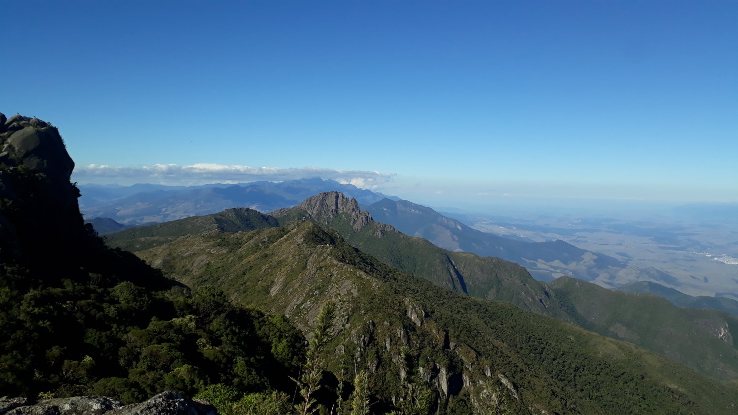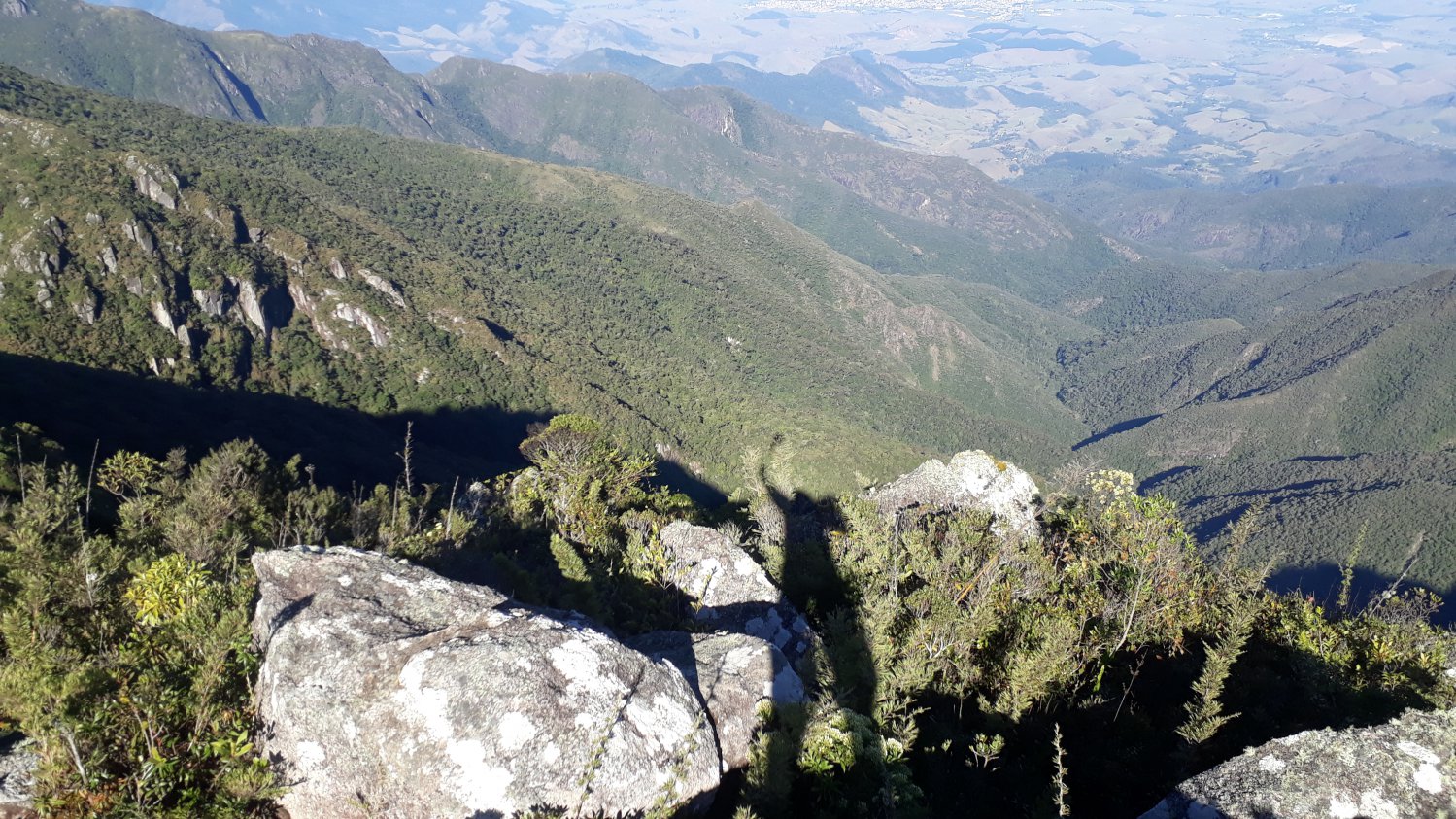 Depois de descansar um pouco, tomei o caminho do Marins, descendo pelo sudoeste. Essa trilha margeia uma piramba de onde se vê o Vale do Paraíba e a mata virgem na vertente sul do Marins/Marinzinho.