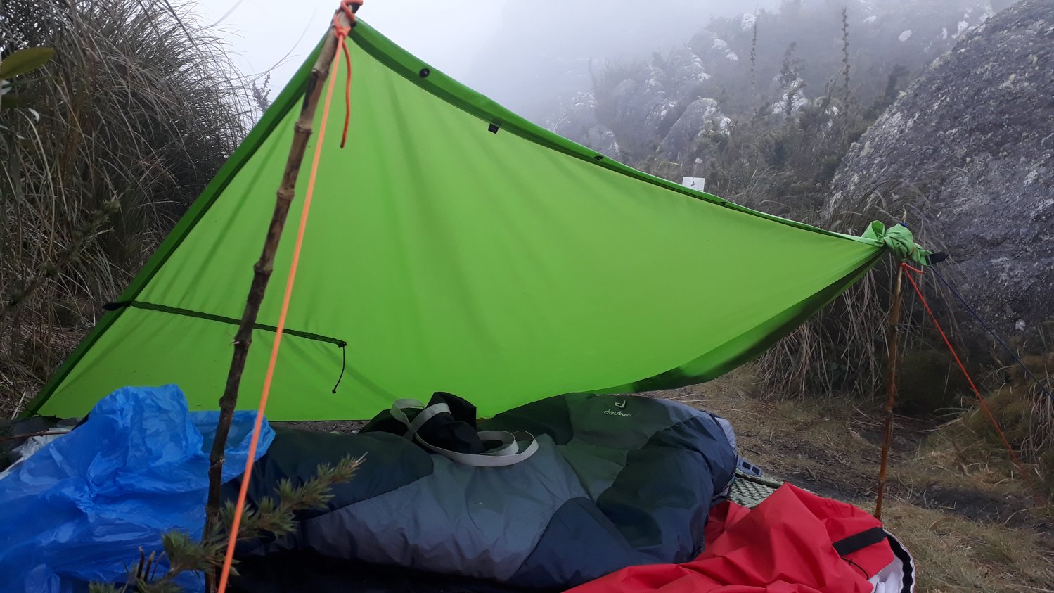 É muito importante que se conheça bem e se teste todo o equipamento antes de subir a montanha, sobretudo em trekking solo, onde não há ninguém para ajudar. O fato de eu já saber montar o tarp e ter bivacado com ele em lugares ermos foi fundamental lá em cima.