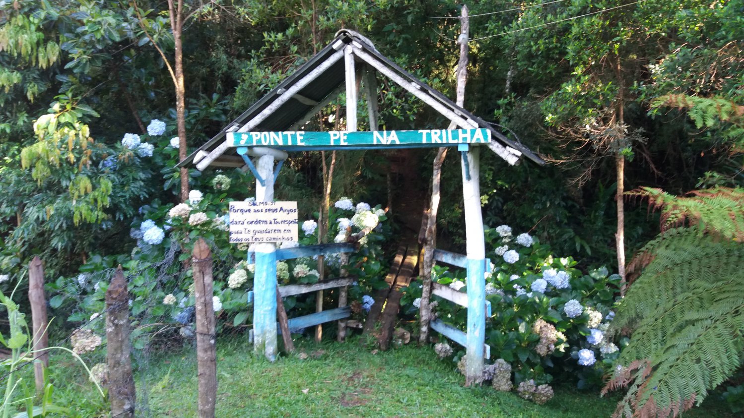 Acordei cedo, e como estava chovendo dormi de novo, rsrs. Às nove botei a cara fora da barraca, a chuva tinha parado e abriu o sol. Vi que ainda dava tempo de subir. Já tinha deixado as coisas meio arrumadas, preparei uns quatro sandubas de creme de amendoim, enfiei na mochila de ataque e zarpei pela ponte "pé na trilha" que dá na estradinha atrás da pousada.
