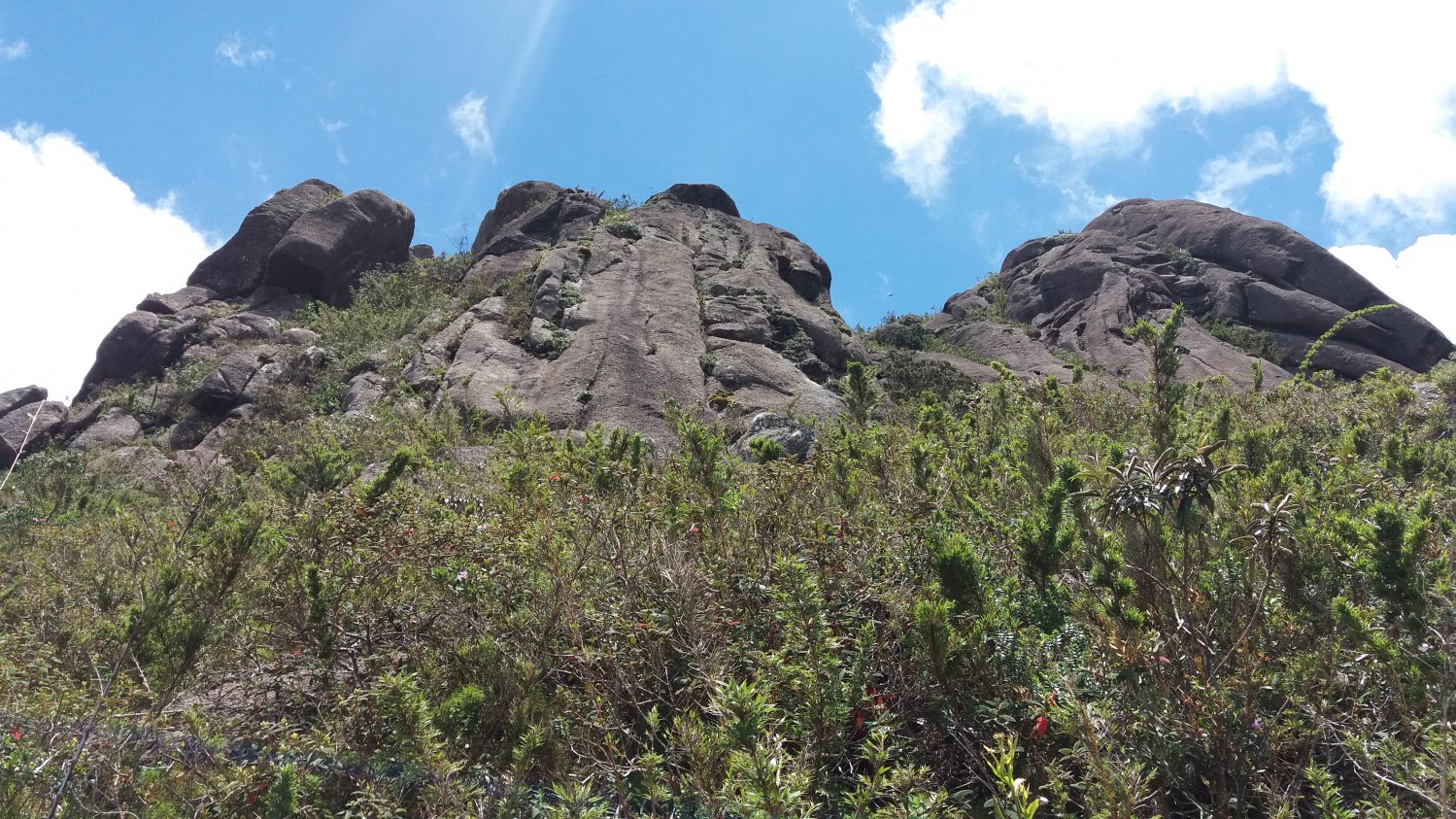 Depois do platô começa o ataque final. Quando ficamos diante do pico a impressão é que é tão vertical que não vai ser possível subir sem equipamento. Mas a trilha - sempre bem demarcada - vai contornando as rochas, exige um pouco de técnica nas escalaminhadas, mas não é tão difícil. Como disse, não confie nas cordas.