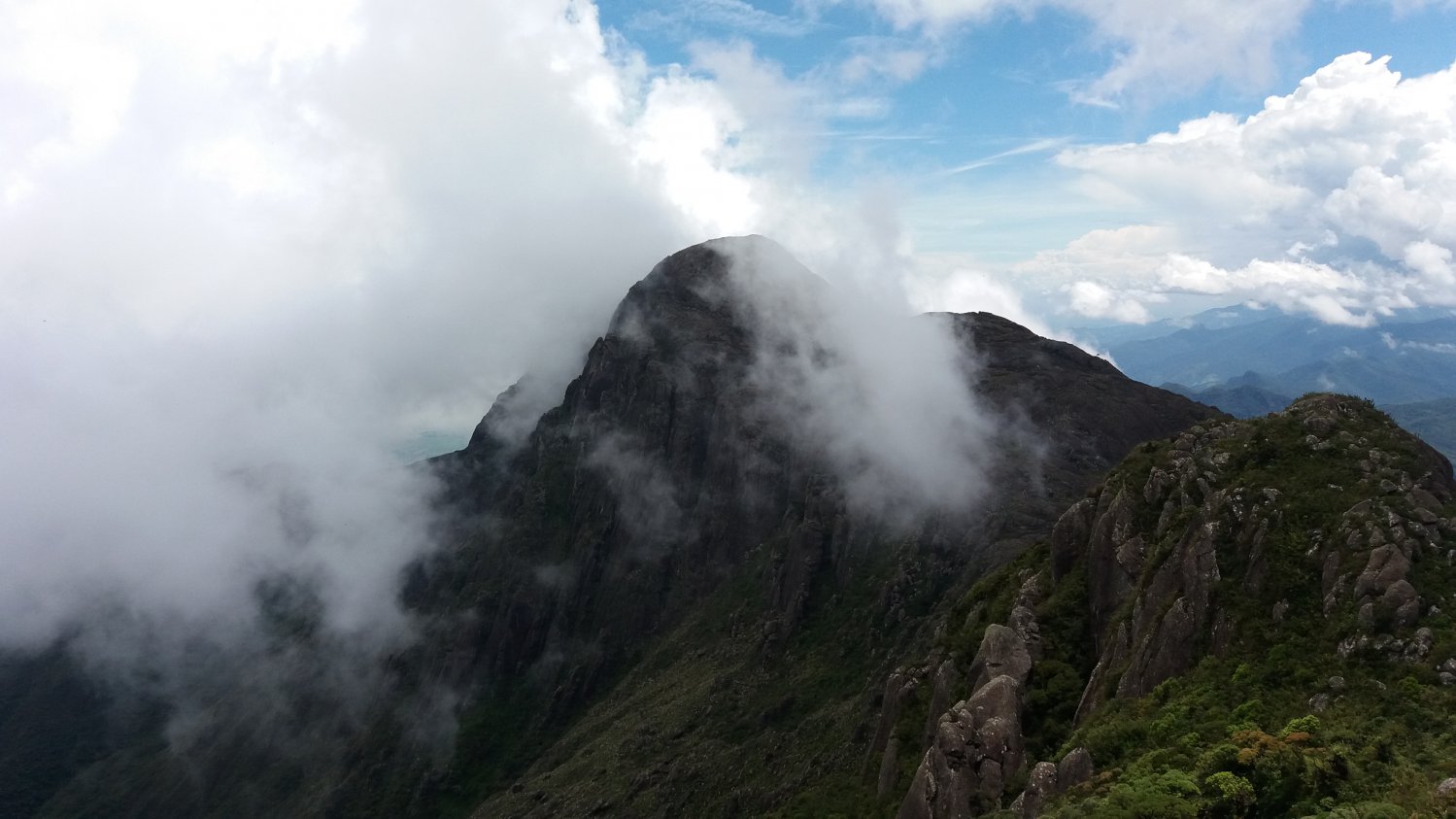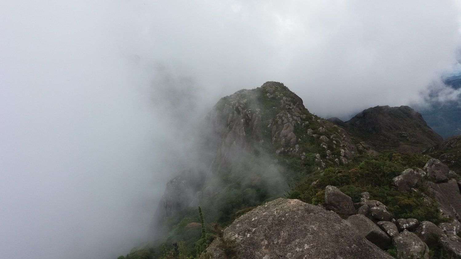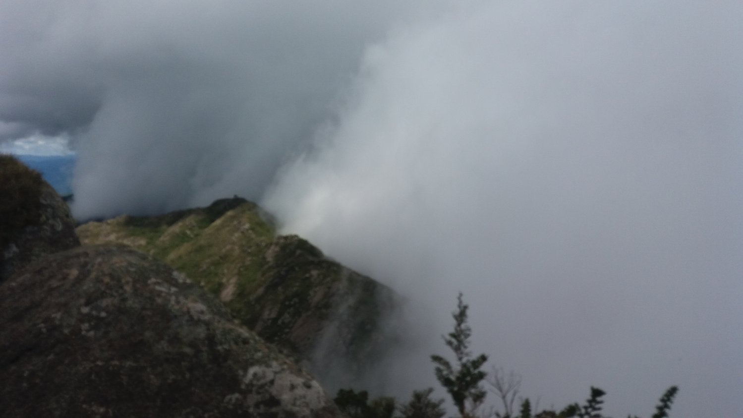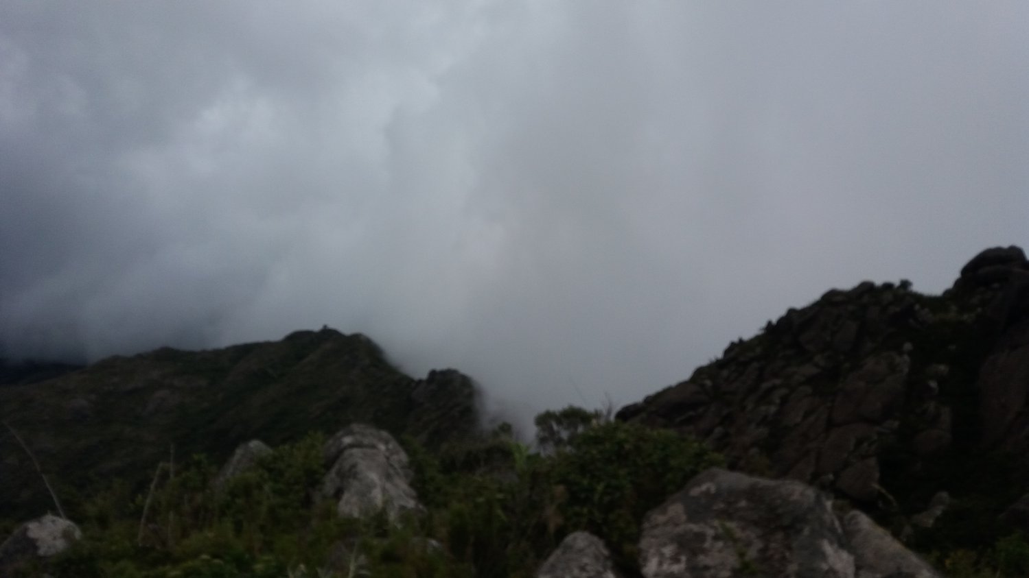 Abaixo vemos a porção leste do pico do Marinzinho. O Itaguaré está coberto pelas nuvens.