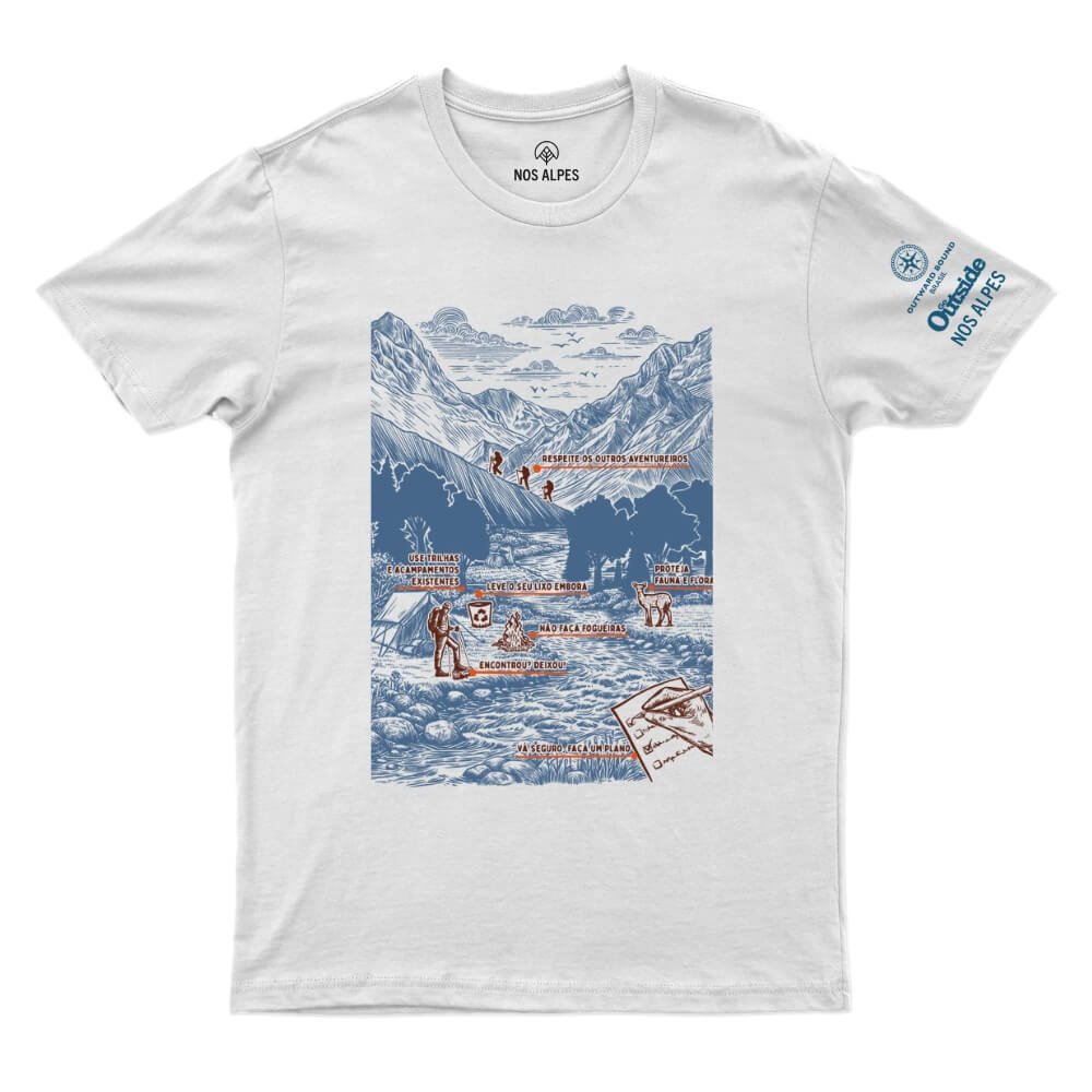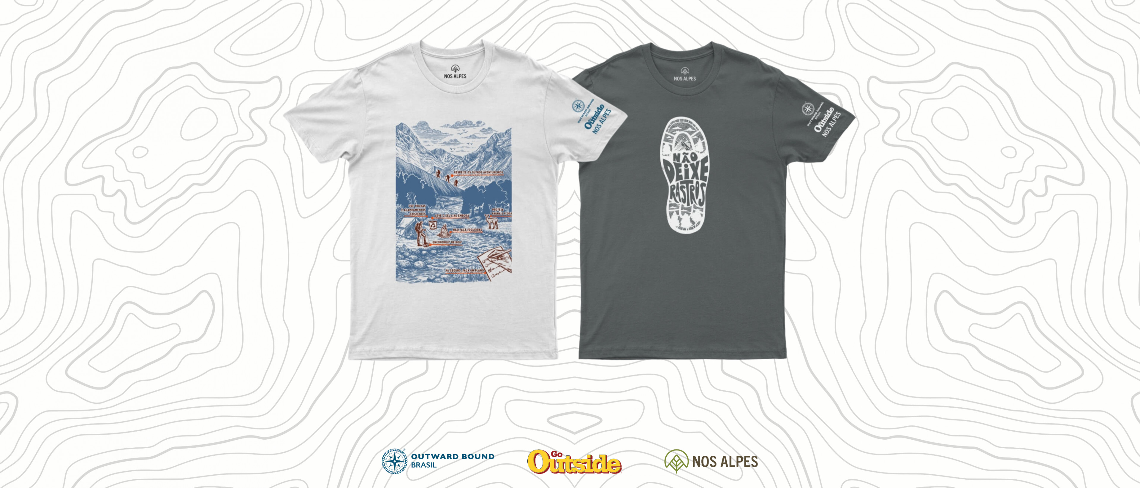 Vista-se com a nova coleção de estampas inspiradas nos 7 princípios de Mínimo Impacto, uma parceria entre a escola de aprendizagem ao ar livre Outward Bound Brasil, a revista outdoor internacional Go Outside e a marca de vestuário Nos Alpes.