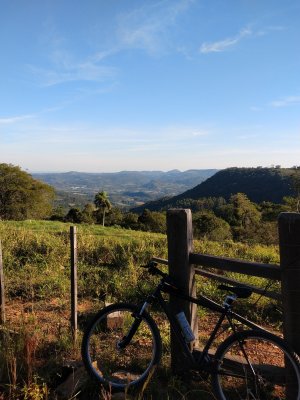 61km, percorridos (com várias paradas) em cerca de oito horas, pelo interior de Santa Cruz do Sul/RS,com a MTB aro 26 (antiga)Legnano roano.
