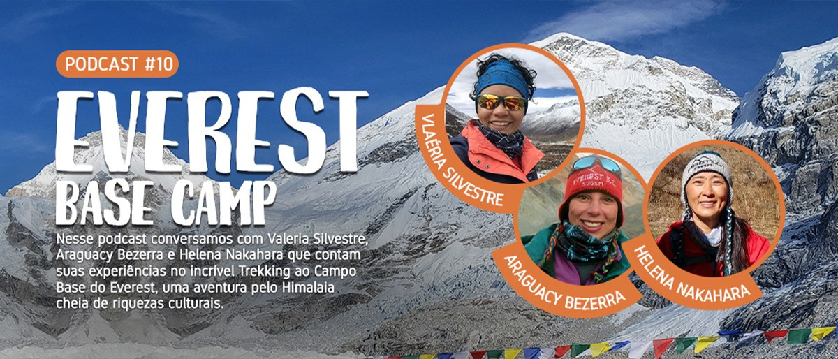 Nesse podcast conversamos com Valeria Silvestre, Araguacy Bezerra e Helena Nakahara, que contaram tudo sobre suas experiências no incrível Trekking ao Campo Base do Everest. Uma aventura pelo Himalaia cheia de riquezas culturais e paisagens de perder o fôlego.