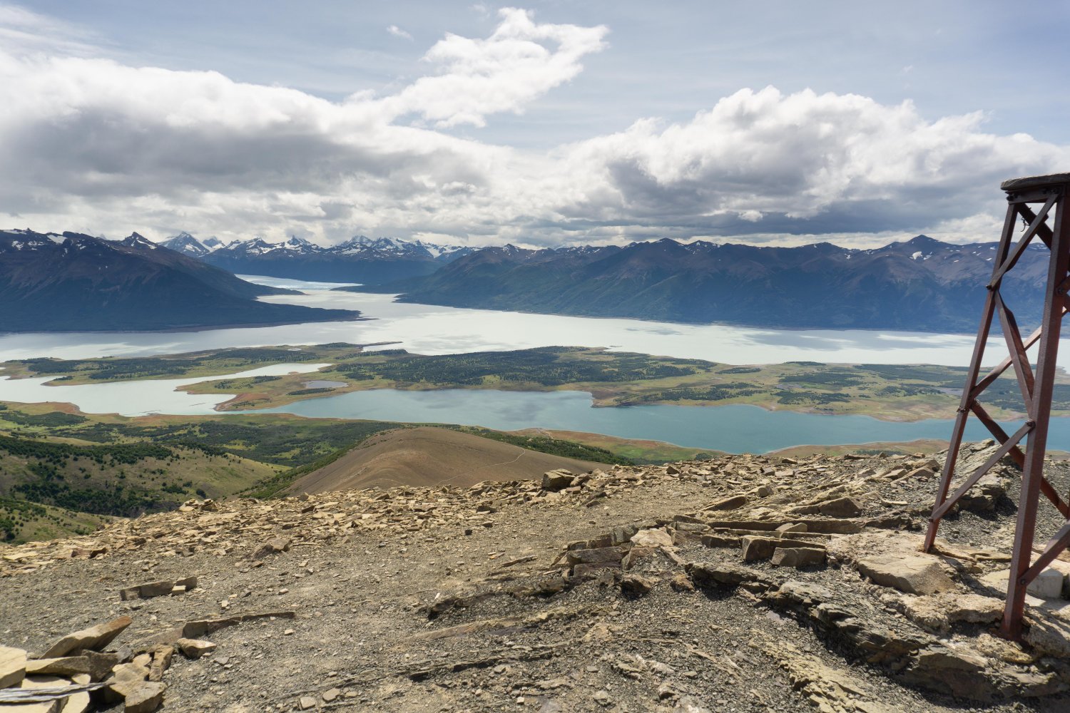 Mas no cume, a 1282 metros de altitude, junto com fortes ventos patagônicos, tivemos uma bela vista do glaciar Perito Moreno, lago Roca e lago Argentino, com as montanhas nevadas no horizonte.