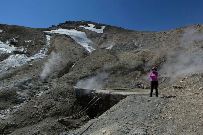 Com uma hora de caminhada, passamos por um ponto de captação de água quente, para a piscina confortável do hotel logo abaixo. Quem não quiser ou não tiver fôlego para chegar no rio, pode aproveitar as águas termais direto da piscina do hotel.