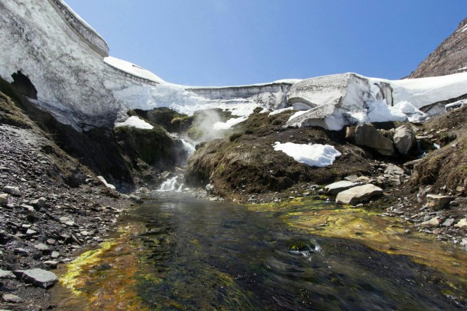 - Os chilenos nos falaram que bebem a água do rio. Achei o sabor bem estranho. Na dúvida, cavamos bem fundo para coletar uma neve limpa, derretemos e filtramos antes de beber. Melhor prevenir do que remediar.