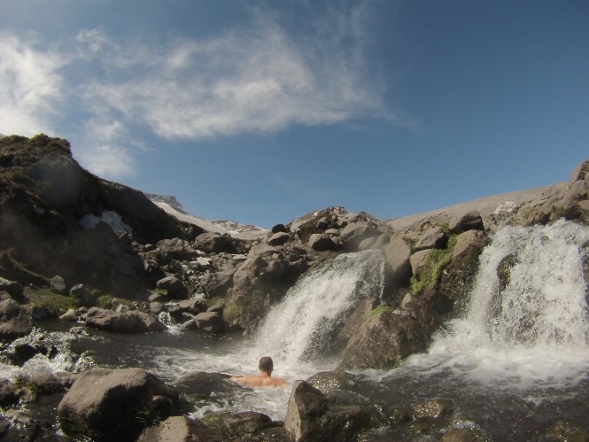 Duas noites acampando em um ambiente nevado e ao lado de um rio termal. Frequentado por chilenos e pouco explorado por estrangeiros.
