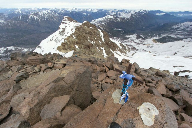 Chegando no topo, a 2400 metros de altitude, ao lado de uma cruz, havia sinal de celular e vimos que a previsão do tempo indicava chuva para o dia seguinte. Então era melhor ir embora mesmo. O vento castigava muito.