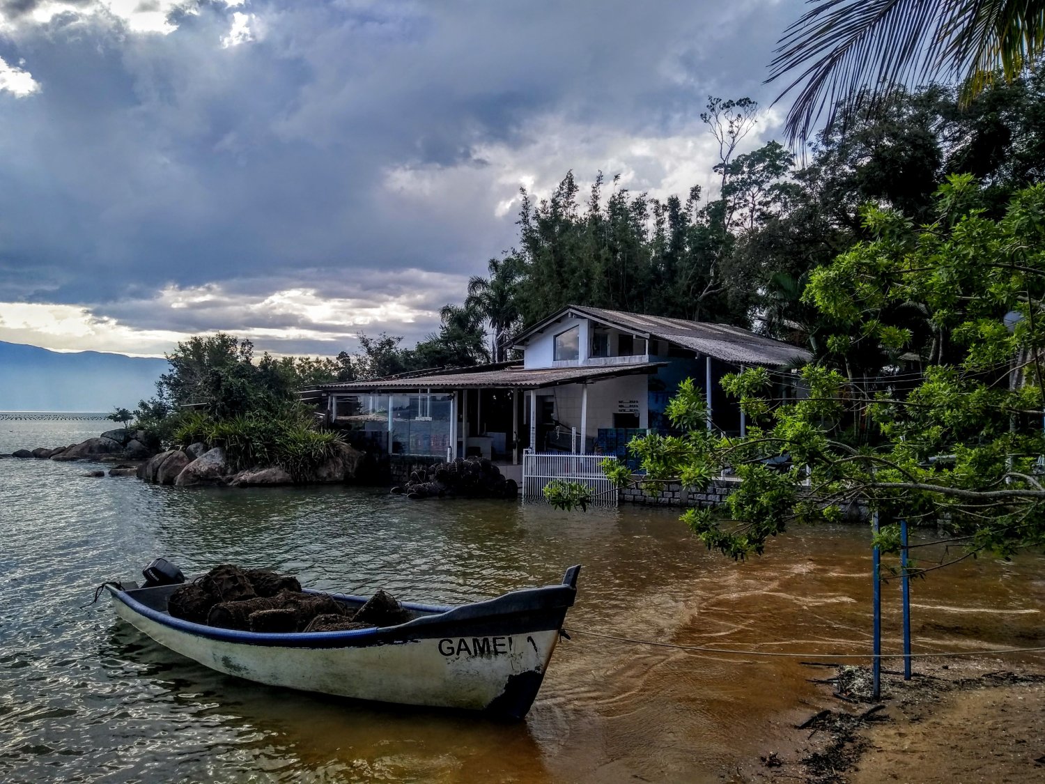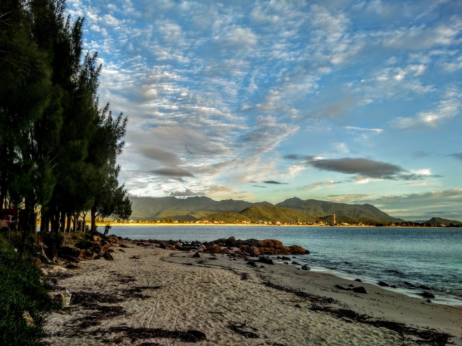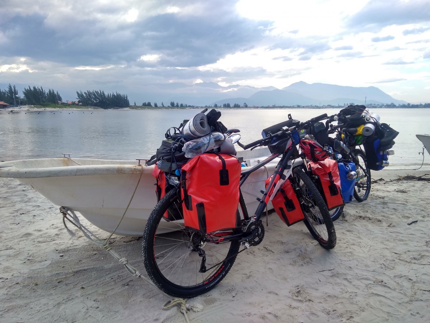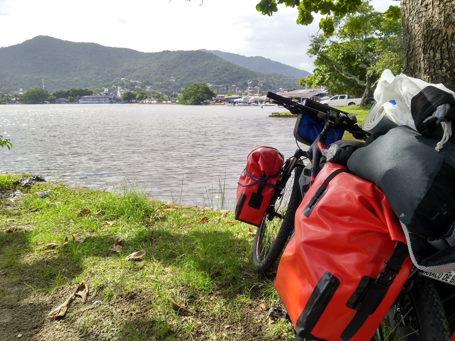 Saimos de Florianópolis com destino a Caieira da Barra do sul, no sul da ilha, para fazer a travessia de barco para o continente onde iríamos passar a noite. O trecho entre o camping e Caieira durou o dia inteiro e foi muito puxado devido o sobe e desce. A minha bicicleta tinha 27 velocidades e aro 29. A do Léo, era uma aro 26. Como eu eu falei anteriormente eu tinha me preparado para essa viagem durante um ano. Eu cheguei a pedalar em torno de 4000 km em treinamento. Meu companheiro de viagem aparentemente não investiu muito em treinamento e eu observei que ele se cansava com muito mais facilidade, além da bicicleta dele está muito pesada. Mas conseguimos chegar em caieira da Barra do sul no final da tarde. Contratamos um barqueiro que fez a travessia por r$ 100 para praia do sonho no continente.