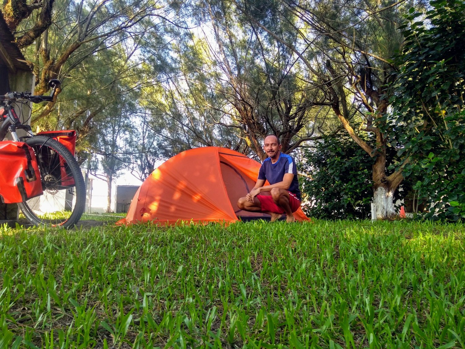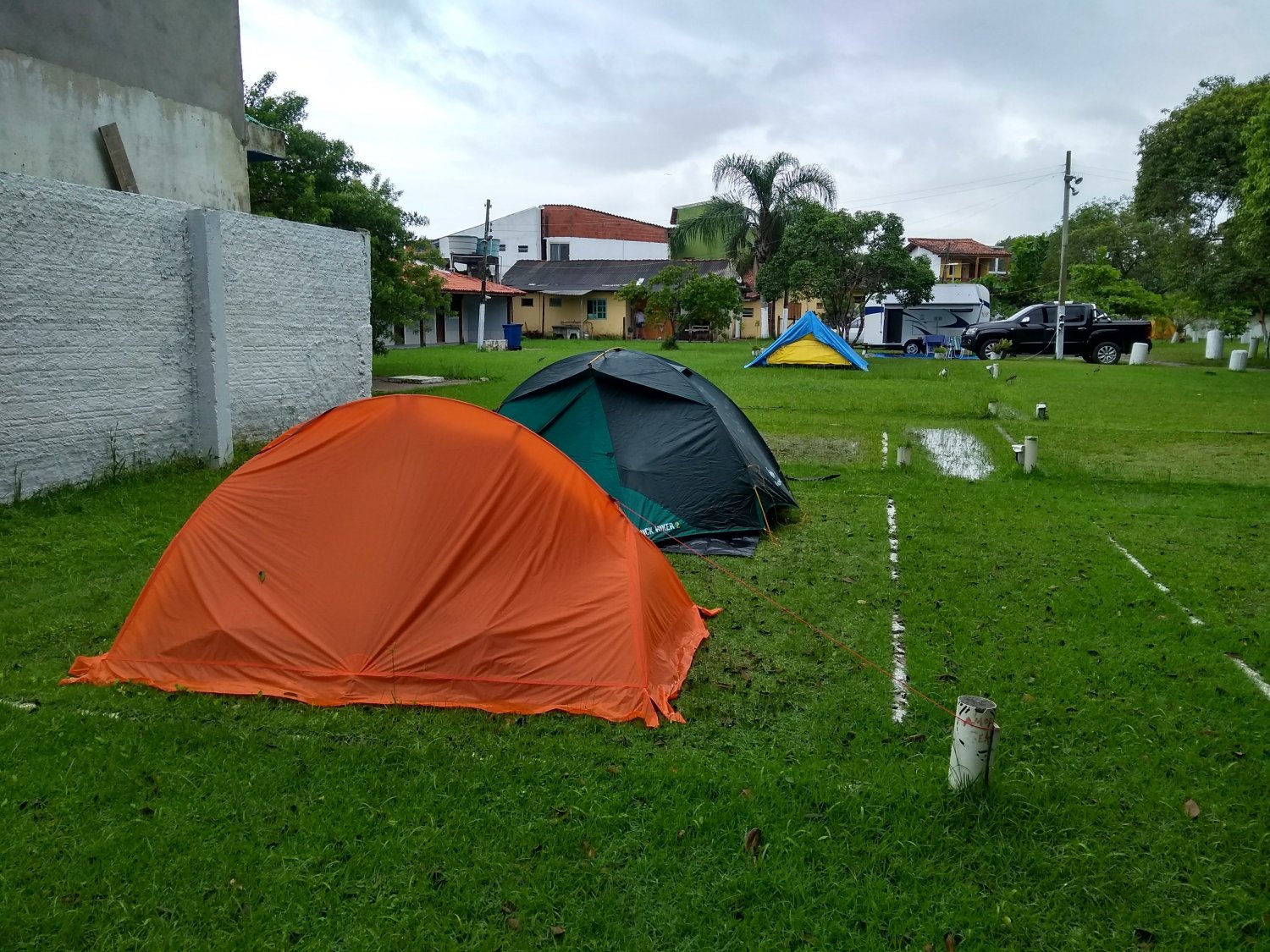 Depois de armar minha barraca no camping, eu fui dar uma volta a pé próximo à praia mole, minha preocupação era se seria seguro deixar as minhas coisas dentro da barraca no camping, pois só tinha mais uma pessoa além de mim. Eu resolvi pegar objetos de valor e dinheiro e coloca los na mochila e deixar apenas os alforges dentro da barraca. Seria a primeira vez na vida que eu iria acampar. O camping era tranquilo e tinha uma infraestrutura regular. Poderia ser mais bem cuidado na minha opinião. Florianópolis sempre foi a minha cidade preferida e era a sexta vez que eu a visitava. Eu conhecia muito bem seus principais pontos turísticos. O tempo estava nublado ameaçando chover, então retornei para o camping, procurei alguma coisa para comer e entrei em contato com Leonardo para saber que horas ele chegaria em Florianópolis, pois eu tinha combinado que iria até a rodoviária ajudar a montar sua bicicleta. Disse que eu só não iria pegar lo na rodoviária se estivesse chovendo.