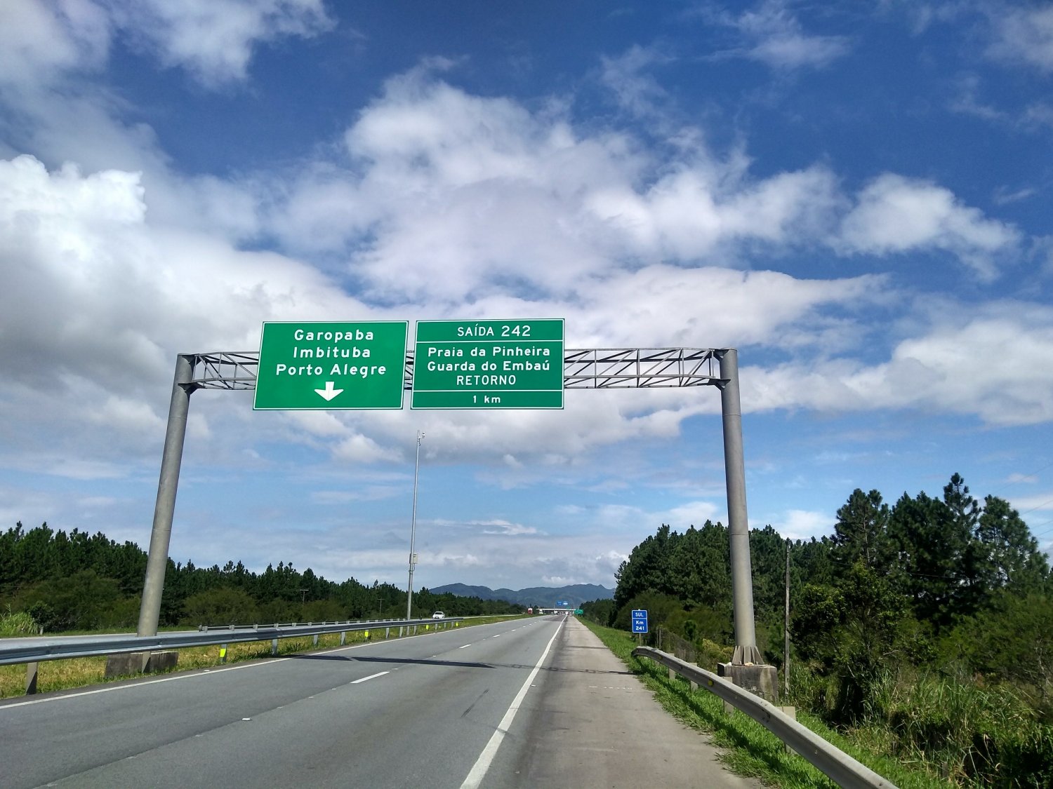 No segundo dia de viagem, nós pedalamos em direção a Imbituba. Iniciamos pela BR 101, trânsito caótico mas relativamente seguro. Pedalavamos pelo acostamento e sempre que passavamos ao lado de um posto de gasolina nós parávamos para tomar água e descansar um pouco. Neste momento, nós não tínhamos nenhum warmshowers que fosse nos receber em Imbituba. Eu tinha combinado com uma pessoa pelo Facebook para ficar na casa dela, em Imbituba, mas acabou que não deu certo e nós provavelmente teríamos que dormir em um posto de gasolina. Pedalar pela BR 101 era algo que merecia sempre muito cuidado e atenção. Ainda bem que eu tinha comprado um retrovisor em Florianópolis que foi importante durante toda viagem. Atualmente acredito que um retrovisor é indispensável em uma cicloviagem, ele pode salvar sua vida e considero que seja um dos itens mais importantes em uma ciclo expedição principalmente se você for pedalar por rodovias estaduais ou federais e mesmo dentro das grandes cidades.