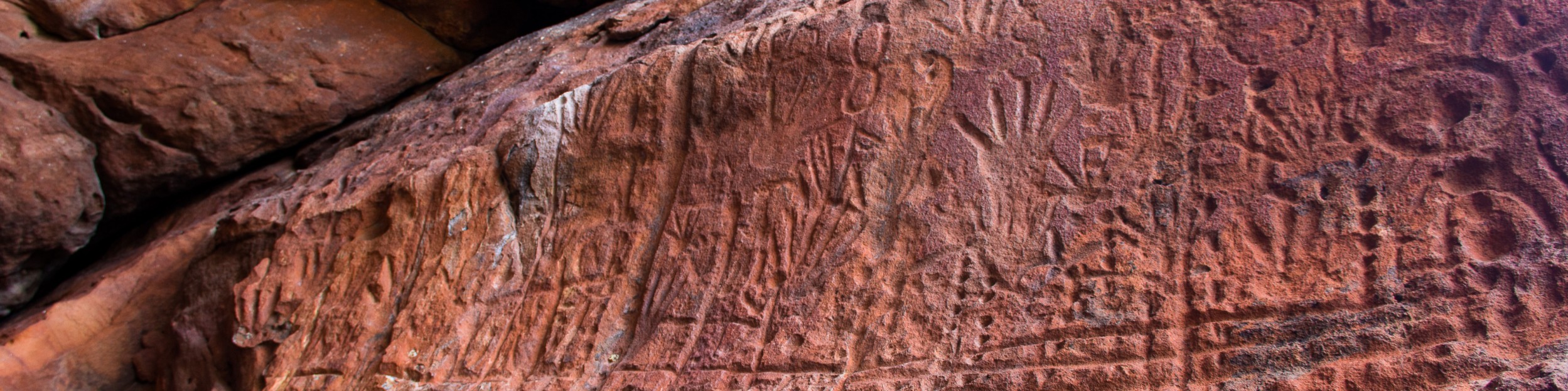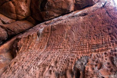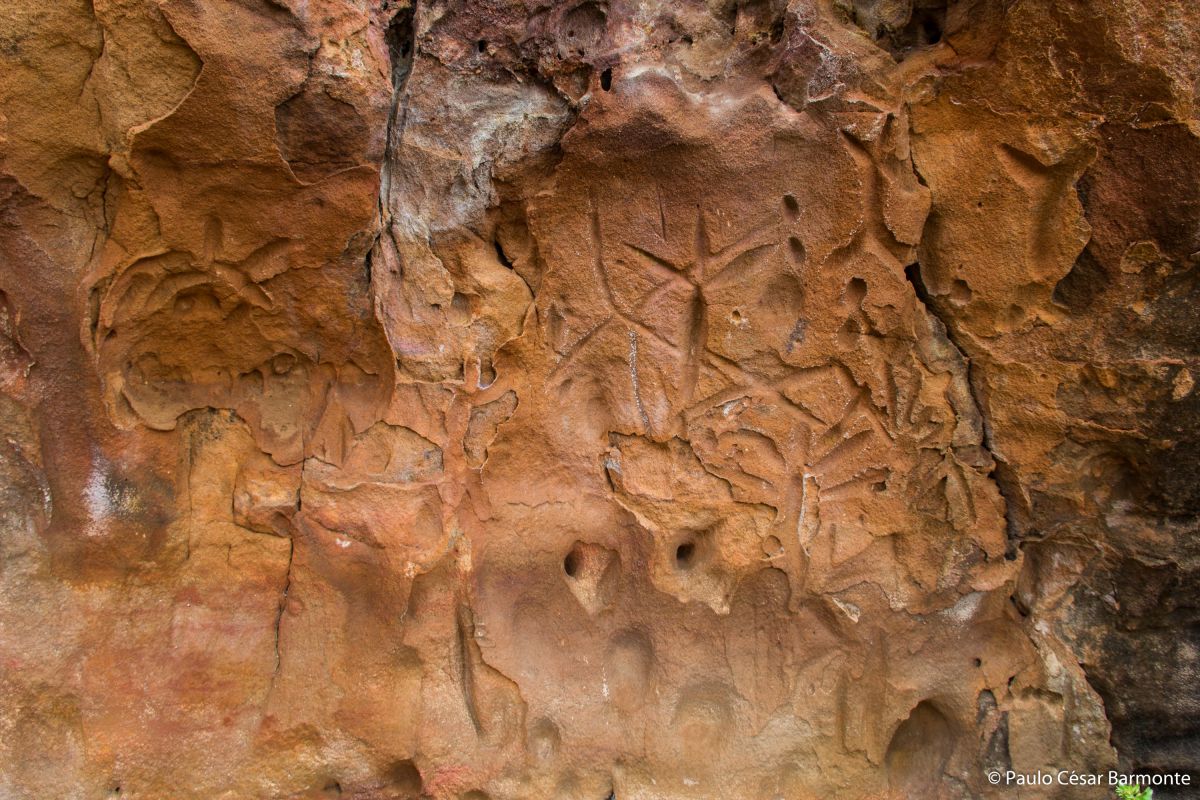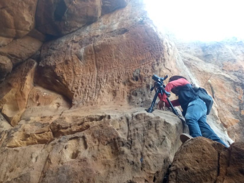 Filmagem e fotografia de gravura primitiva em baixo relevo, tipo Itaquatiara, na Serra dos Breus, Buíque-PE