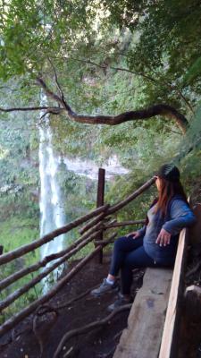 Intensa trilha do Salto El Claro de Pucón (cachoeira do rio El Claro), muito próximo do centro da cidade e rodeado de bosques!