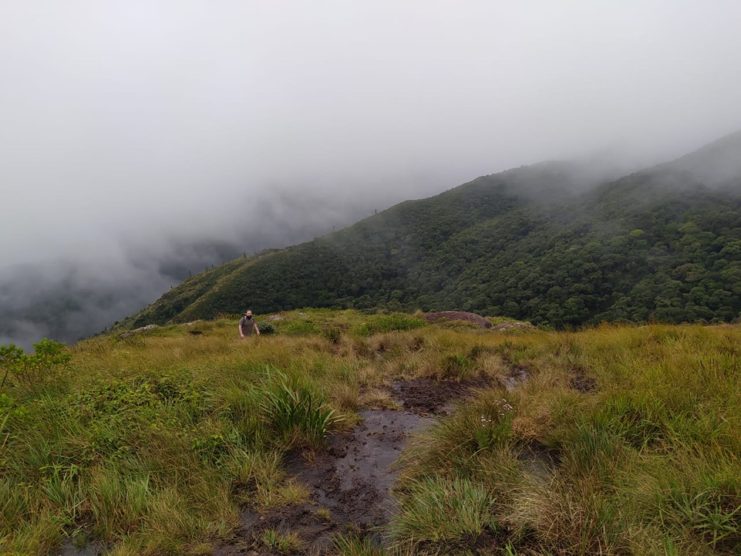 Muita neblina na escalaminhada dos 1559 metros de altitude do Pico Capivari Mirim, em Campina Grande do Sul (PR)