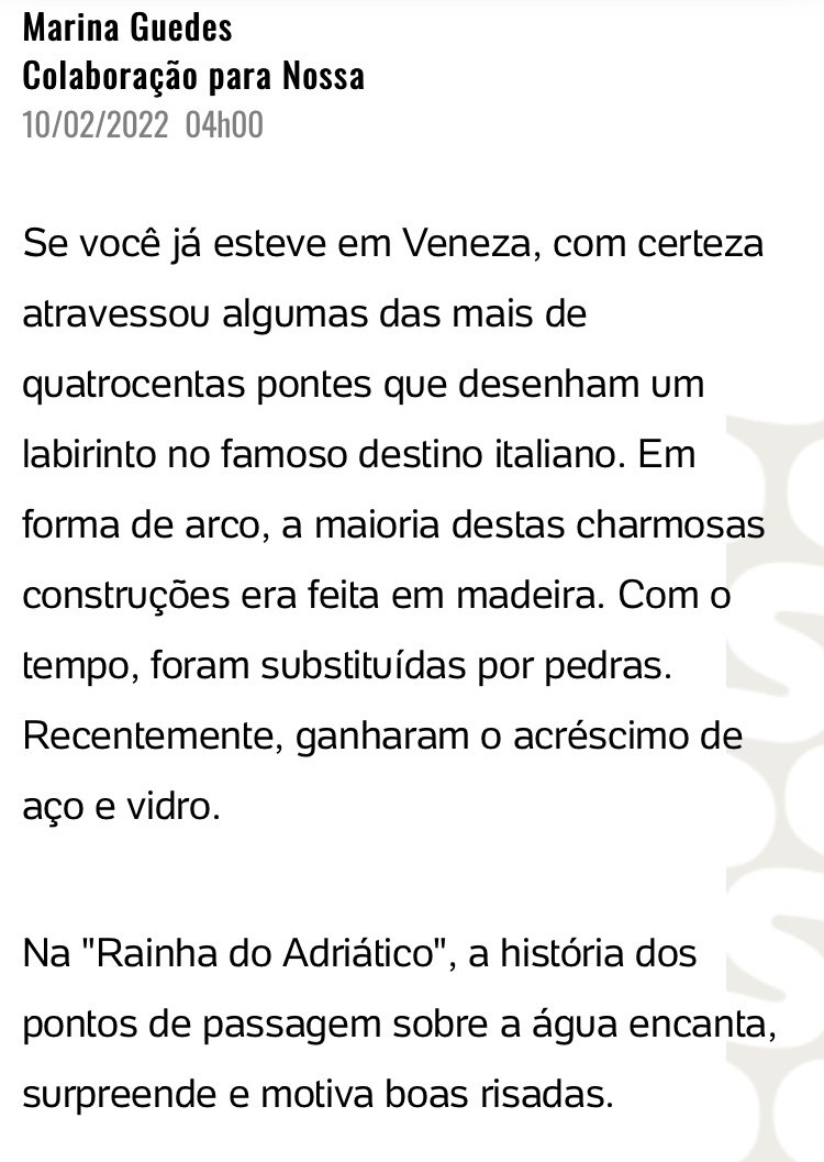 Matéria que fiz pro UOL, sobre as fascinantes pontes da cidade sobre a água.