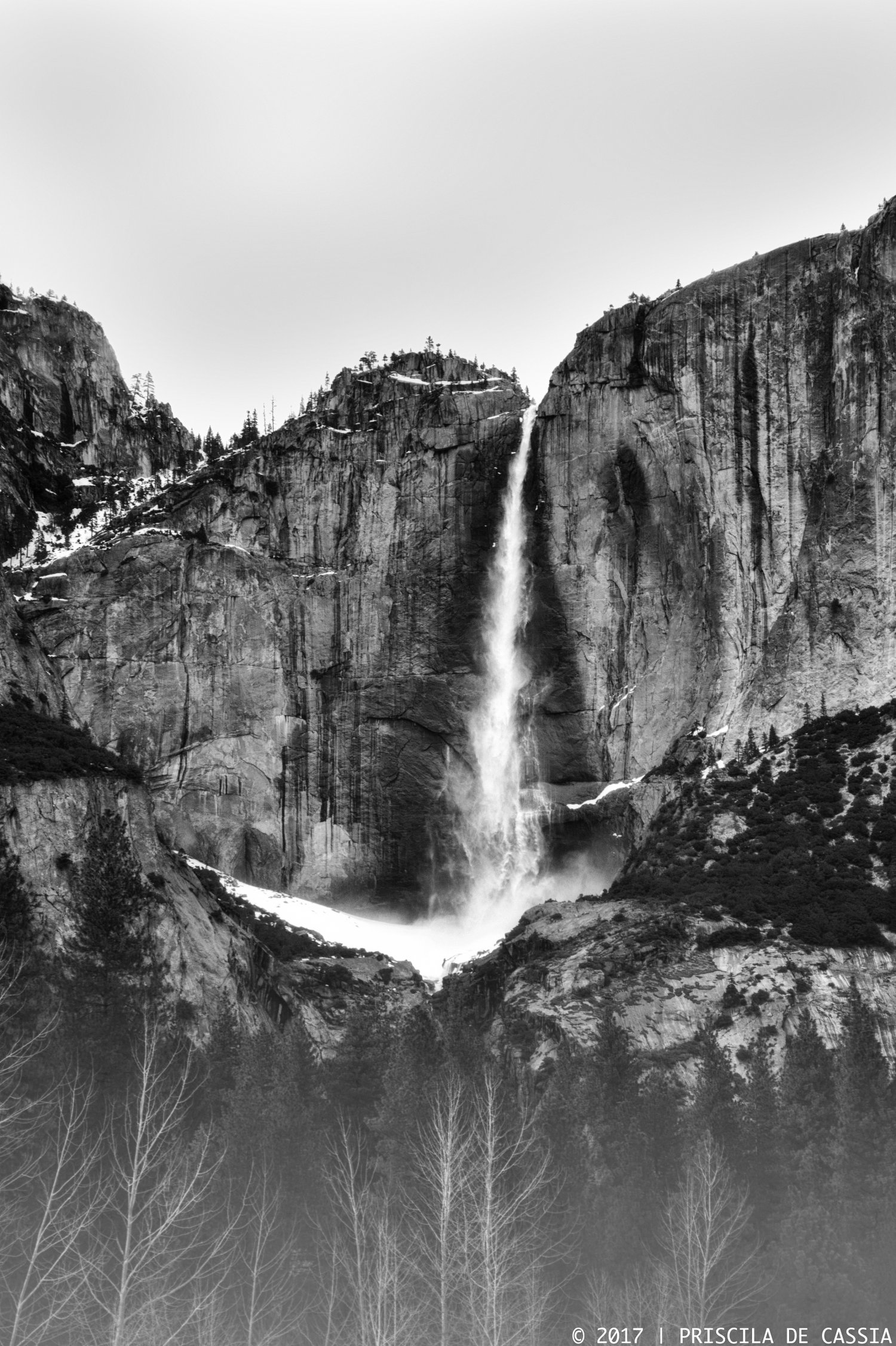 Cheguei ao parque, e fui recepcionada pela Yosemite Falls, uma das cachoeiras mais impressionantes que já vi na vida. Peguei um mapa e entrei no primeiro shuttle, que o parque oferece gratuitamente; falei para a motorista: "Bom dia! Cheguei hoje e quero explorar o parque...onde posso ir?" Após a surpresa inicial dela, fizemos amizade e todas as manhãs pegava o mesmo shuttle para que ela me desse dicas e desenhasse mapas para ajudar em minha missão de fotografar os pontos mais importantes e que foram eternizados por Ansel.