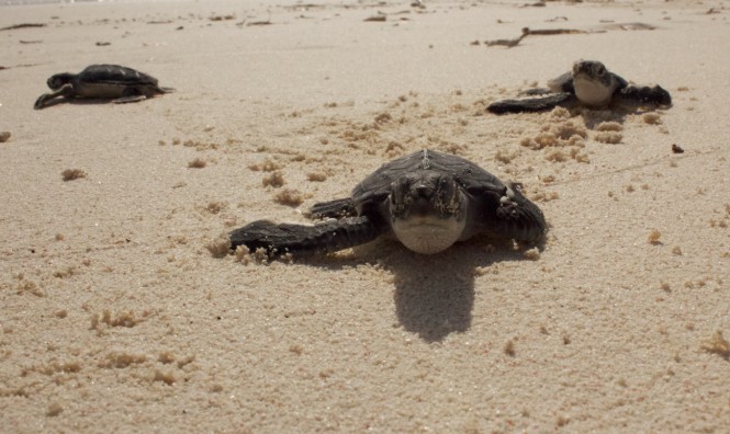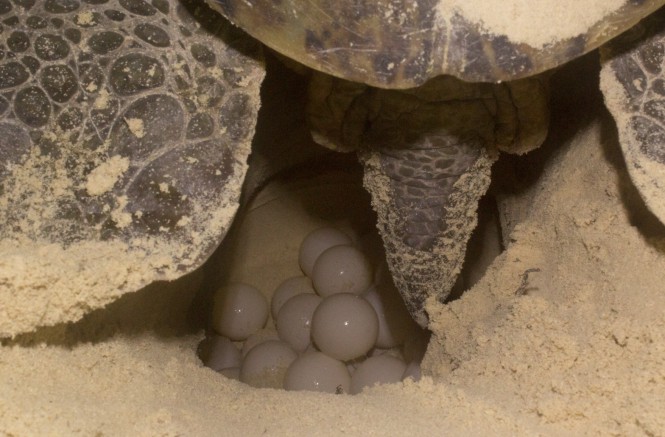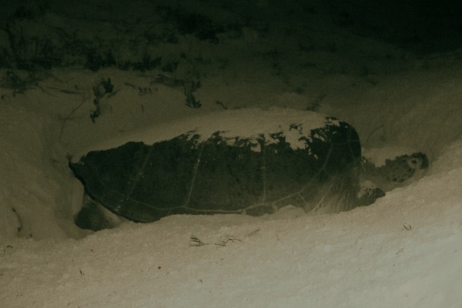 A desova acontece à noite, quando as praias estão pouco iluminadas e as fêmeas sentem mais segurança com relação ao ataque de possíveis predadores. Por isso temos que ter muito cuidado quando estamos caminhando pela praia à procura de tartarugas e ninhos: qualquer movimento mais brusco ou iluminação mais forte pode afugentá-las.