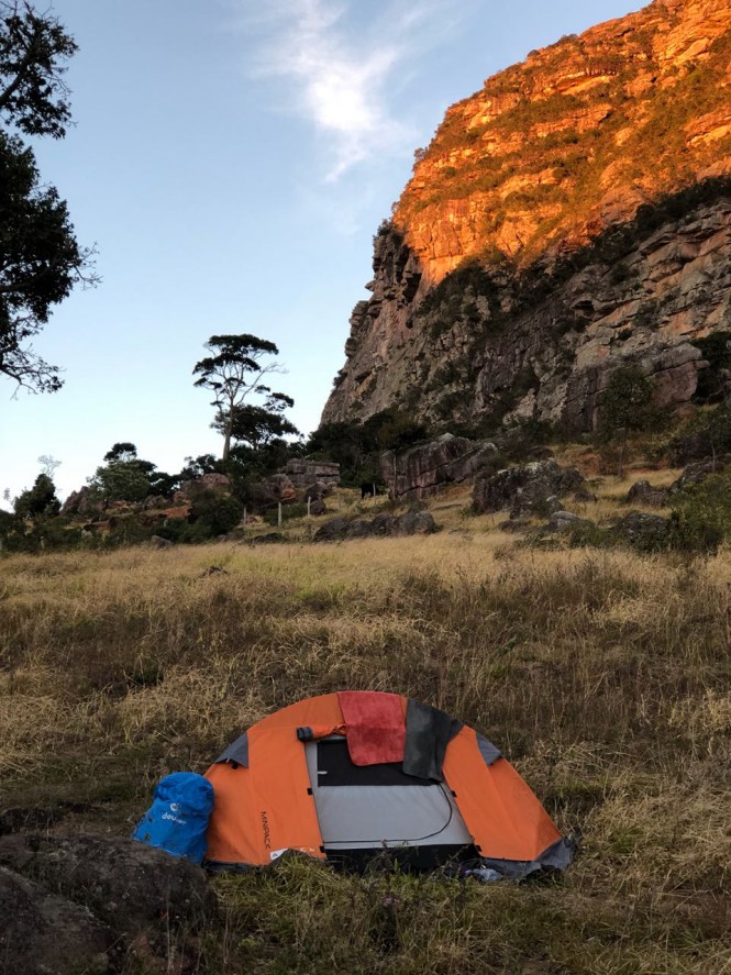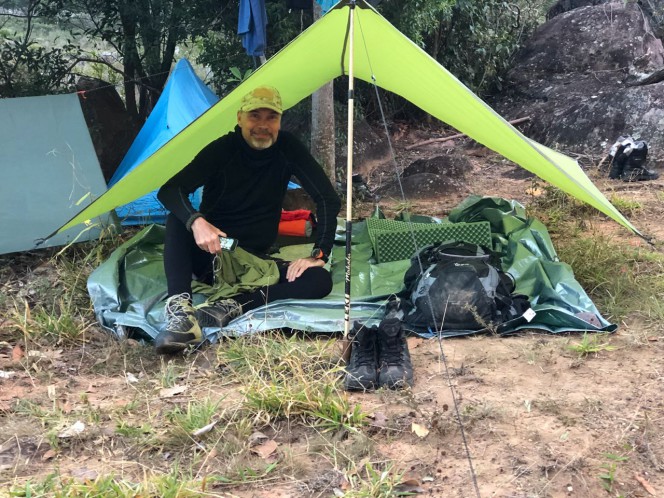 Durante a noite o termômetro caiu para 14ºC. Devido ao vento, que não deu trégua, com o chilling factor a sensação térmica deve ter ficado entre 10 a 12º C. Senti frio, não deveria ter dispensado o saco de dormir. Levei apenas o saco de bivaque, um liner e roupas agasalhadas.