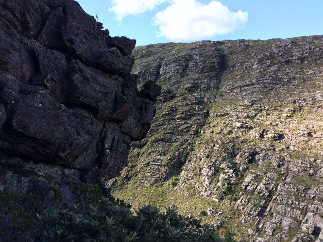 Descida íngreme, forçando os joelhos, merecedora de atenção. Como o caminho é mais utilizado, totens de pedra e desgaste nas rochas indicavam tranqüilamente a rota a seguir.