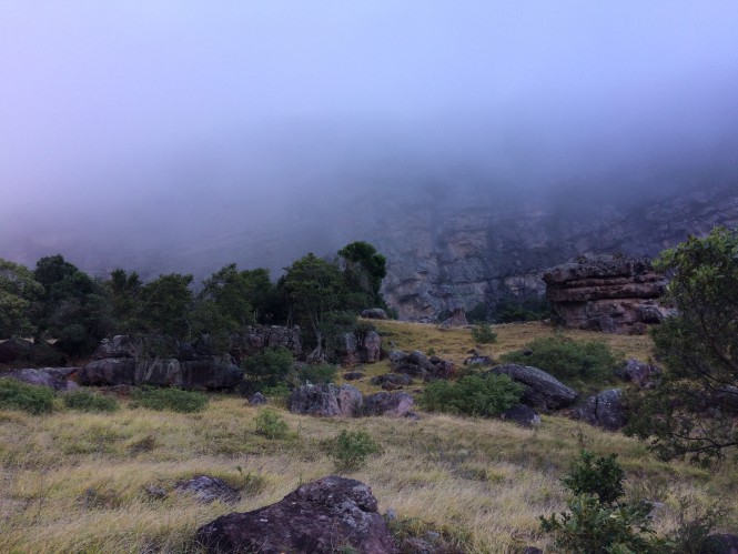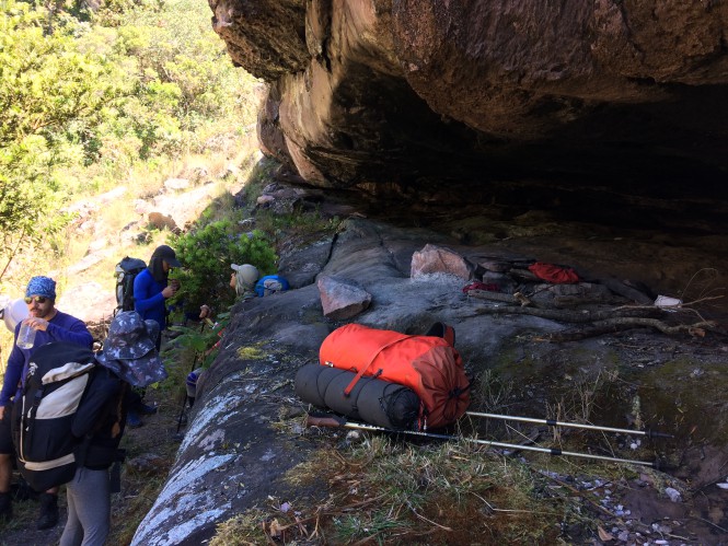 Após meia hora chegamos no ponto e pegamos um pequeno vale lateral por onde descia um pequeno riacho. Subimos por cerca de duas horas este vale até um ponto de descanso, a Lapa Grande, local excelente para bivacar, normalmente usado por caçadores.