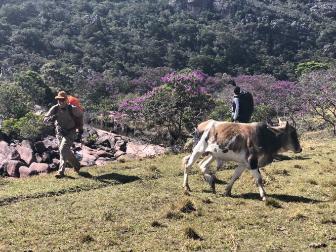 Por volta de três da tarde chegamos num grande pasto com uma casinha fechada. O rio Bicão já estava maior neste ponto. O gado, pensando que estávamos trazendo sal, correu em nossa direção, o que aumentou a adrenalina de alguns membros do grupo.