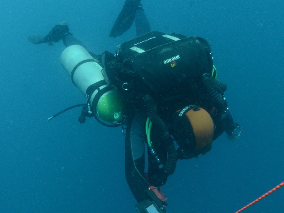 Foi um mergulho com cerca de 75 minutos de fundo e 130 minutos total. A diferença é o tempo que tivemos de fazer descompressão no cabo de âncora, antes de voltar à superfície.
