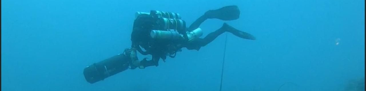 Desci com um deles seguindo o cabo da âncora e ouvi os chamados de Lusquinhos e László (sim, no circuito fechado é possível vocalizar debaixo da água). Eles me alertavam que o forte jato d’água gerado pela hélice do DPV estava pressionando o diafragma do segundo estágio de um dos reguladores de bail out provocando um free flow (grande escapamento de gás do cilindro) que não percebi. Corrigida a situação continuei a descida. Novato é sempre barbeiro!