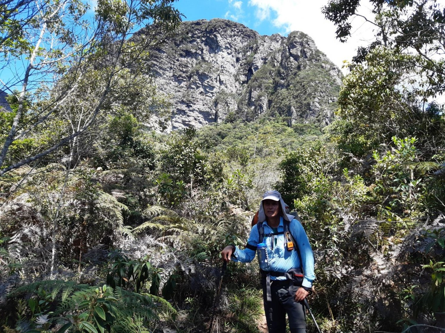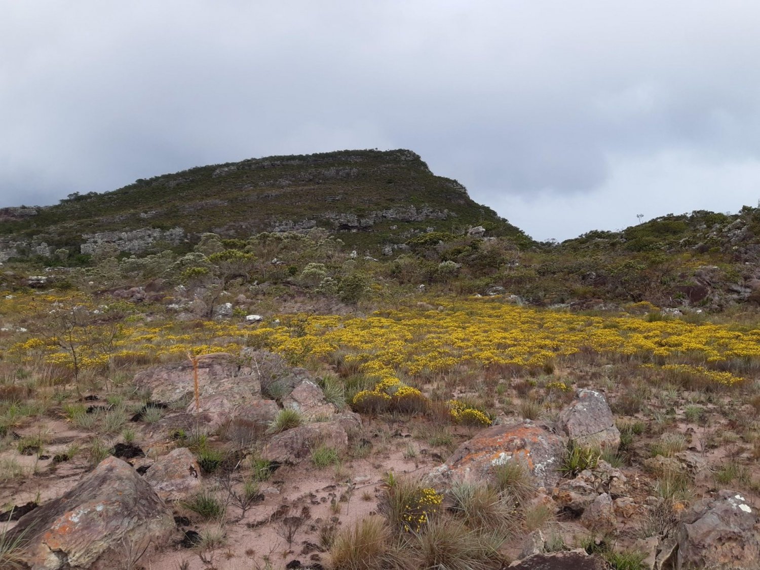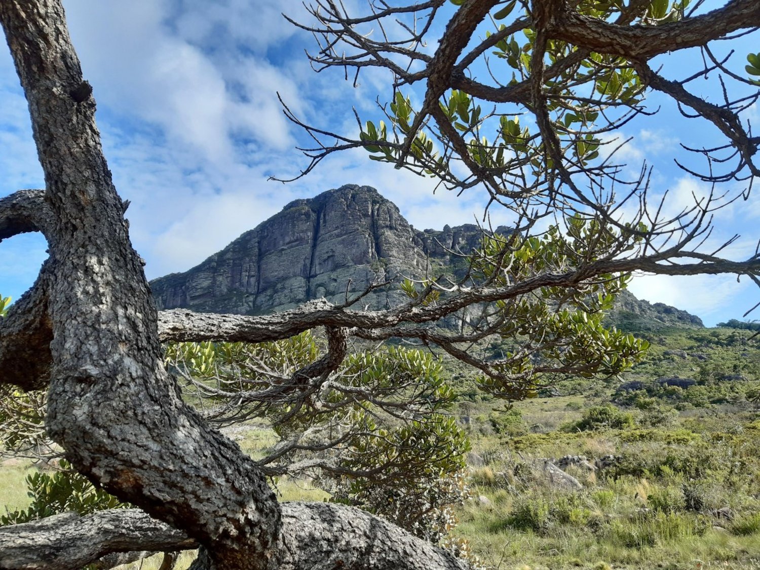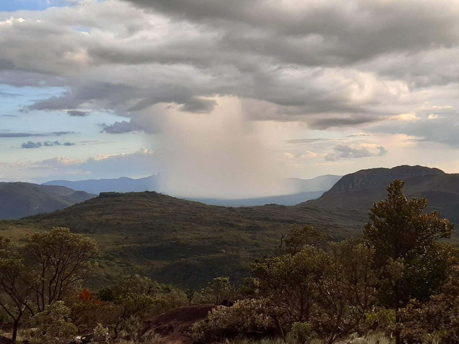 Decidimos contornar a serra pela encosta Norte mantendo-nos numa curva de nível. Isto porque seguindo pelo topo havia o risco de nos tornarmos para-raios. Neste processo pegamos vara-mato e uma chuva copiosa. Passamos por áreas onde claramente havia exploração clandestina de cristais.
