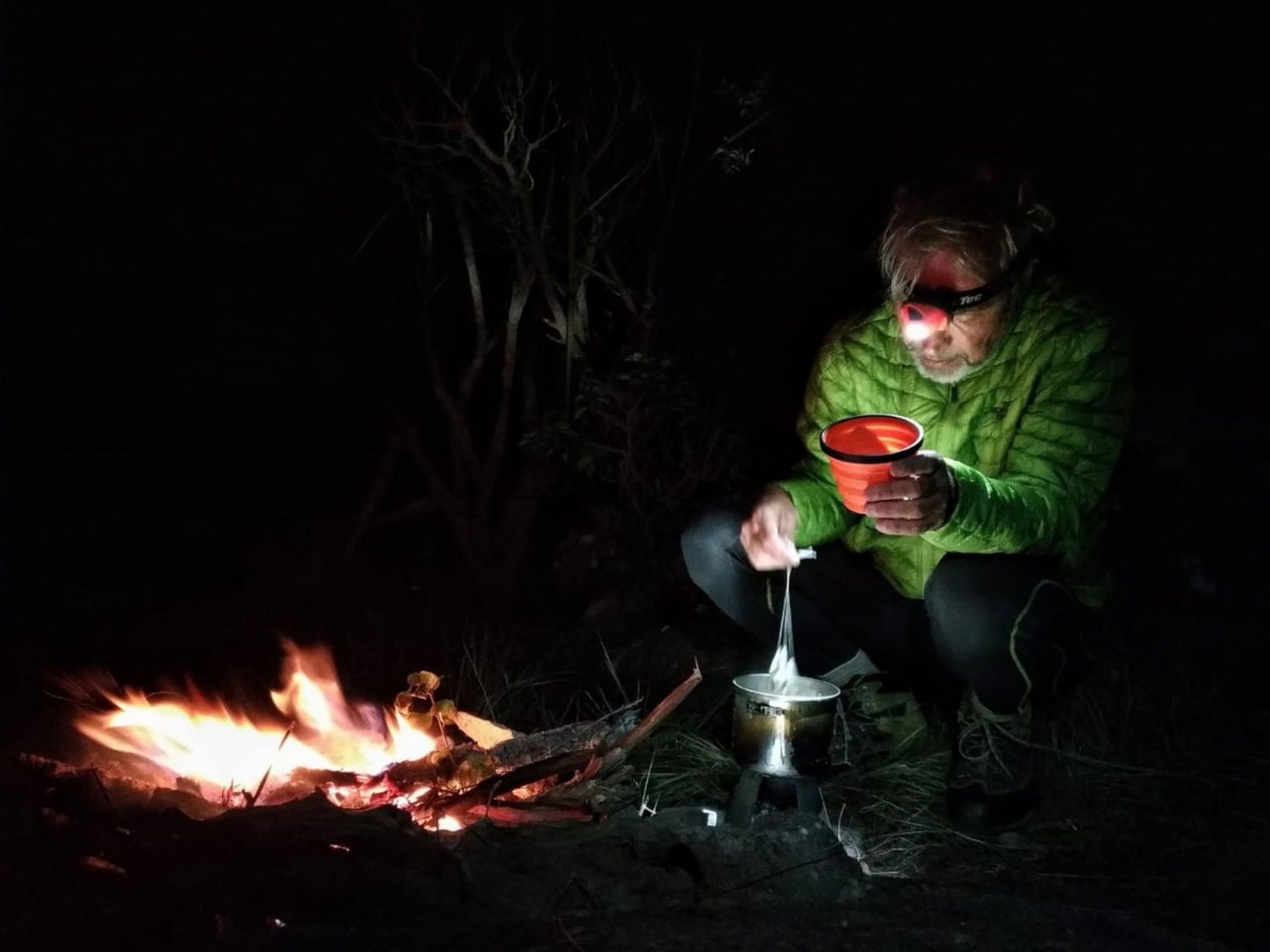 Preparamos a janta a luz das headlamp. Muita conversa e risada a beira da fogueira.
