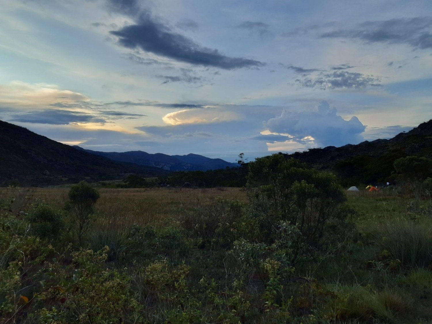 Pela manhã a névoa e o vento forte continuavam. Tomamos café e confabulamos: com o vento, as nuvens baixas e as pedras molhadas era arriscado subir o Barbado (houve casos de gente perdida que foi obrigada a passar a noite na montanha, ficando com hipotermia). Combinamos esperar até as 9 horas para ver se melhorava. Nada, desistimos e acionamos o plano B: descer até os carros em Catolés de Cima onde iríamos para o Guarda Mor para pegarmos a Mata dos Frios pelo outro lado do Barbado.