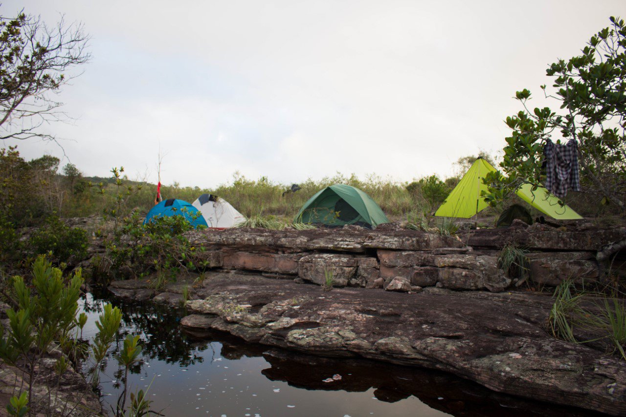 Trekking AcampamentoFábio Dal Gallo e Cristina Macedo convidaram amigos para participar de um trekking na Chapada. Eu sugeri o circuito norte, pela facilidade de locomoção até os pontos inicial e final e apoio. Iríamos com John, filho de Cris, que há anos não ia para a Chapada fazer trilha.