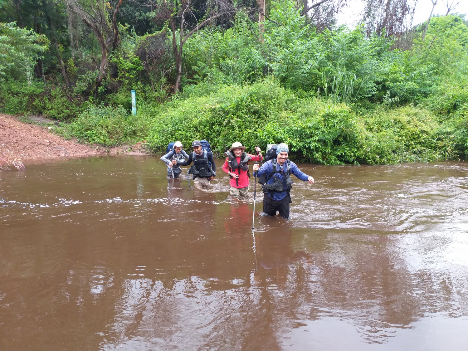 Decidimos seguir exatamente o tracklog e logo a questão estava resolvida. Teimosia achar que o ponto marcado não era o local da travessia do rio. O rio estava bem cheio, por isso pensamos que deveria ser em outro lugar.
