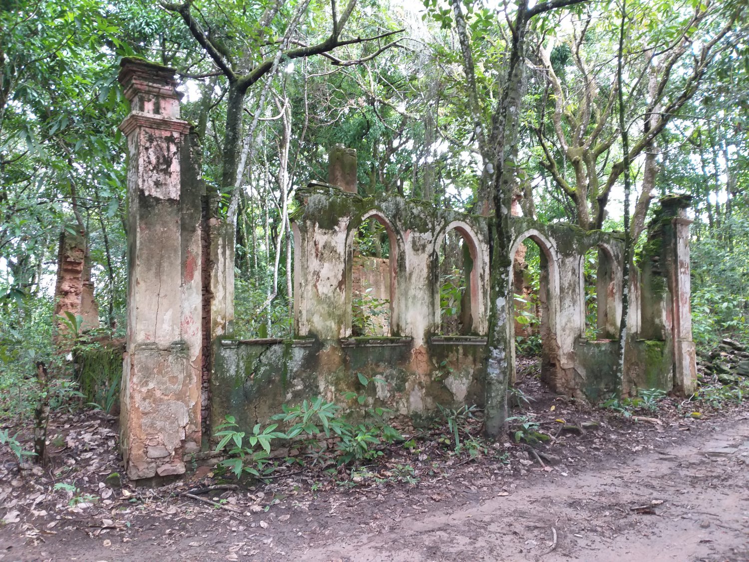 Seguimos agora pela estrada do Barro Branco onde, em determinado ponto, dobramos a esquerda. Pegamos um caminho ladeado por antigas mangueiras, passando por um casarão em ruínas do auge do garimpo, até um local onde achamos o começo da trilha para a gruta do Lapão, indicada no tracklog.