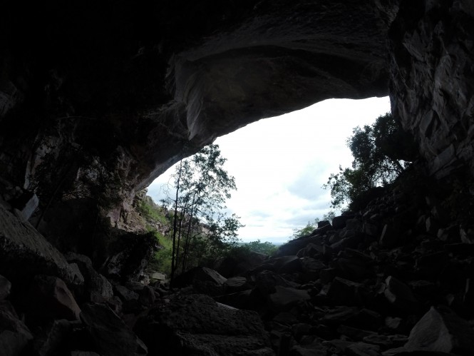 Há uma saída do outro lado, porém o que esta entrada tem de grandiosa, a outra tem de discreta. Segundo soube, poderíamos passar por ela sem notá-la ou sem saber que tratava-se da entrada secundária de uma grande caverna.
