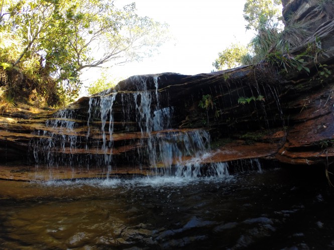 Após poucos minutos de subida entrei numa quebrada a direita para conhecer a Cachoeirinha onde fiz um lanche. Mais adiante, seguindo esta trilha, temos a cachoeira da Primavera.