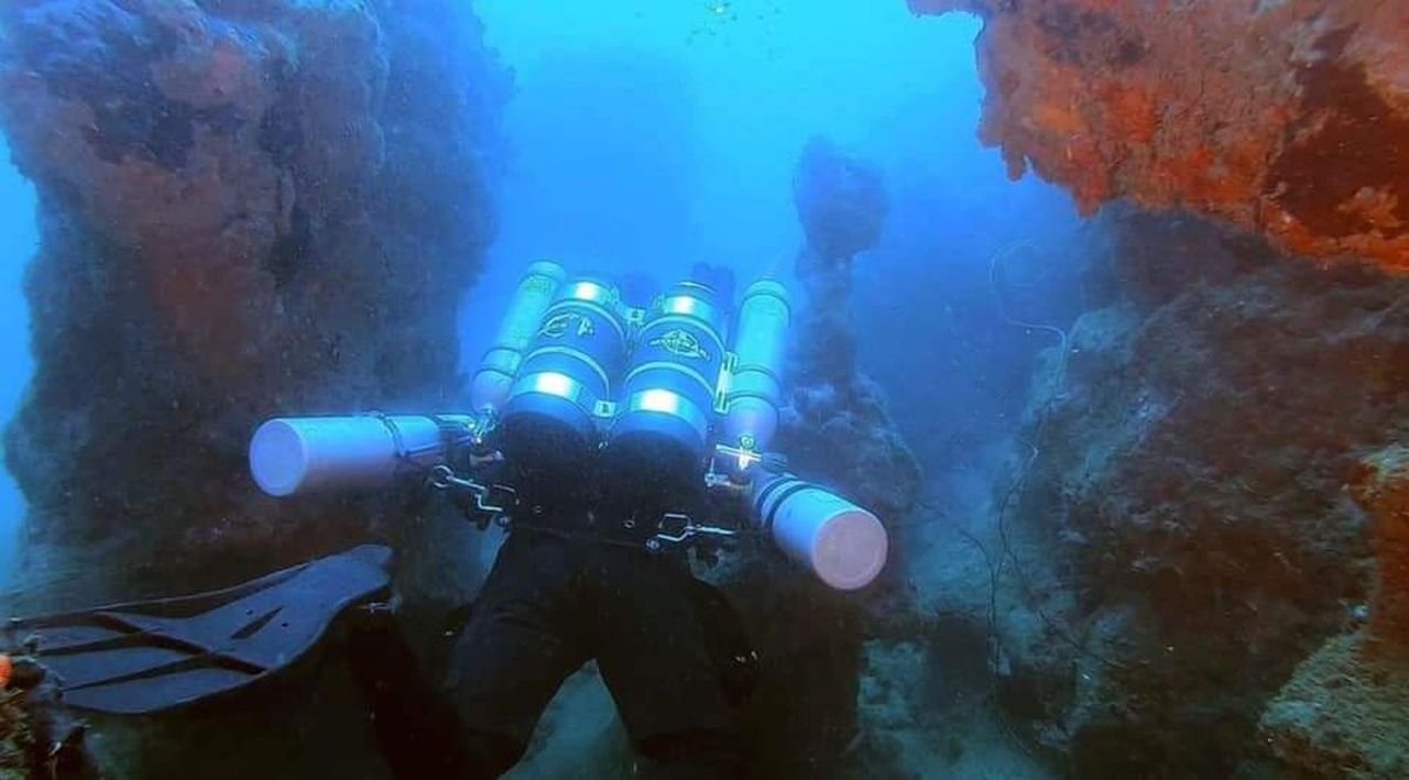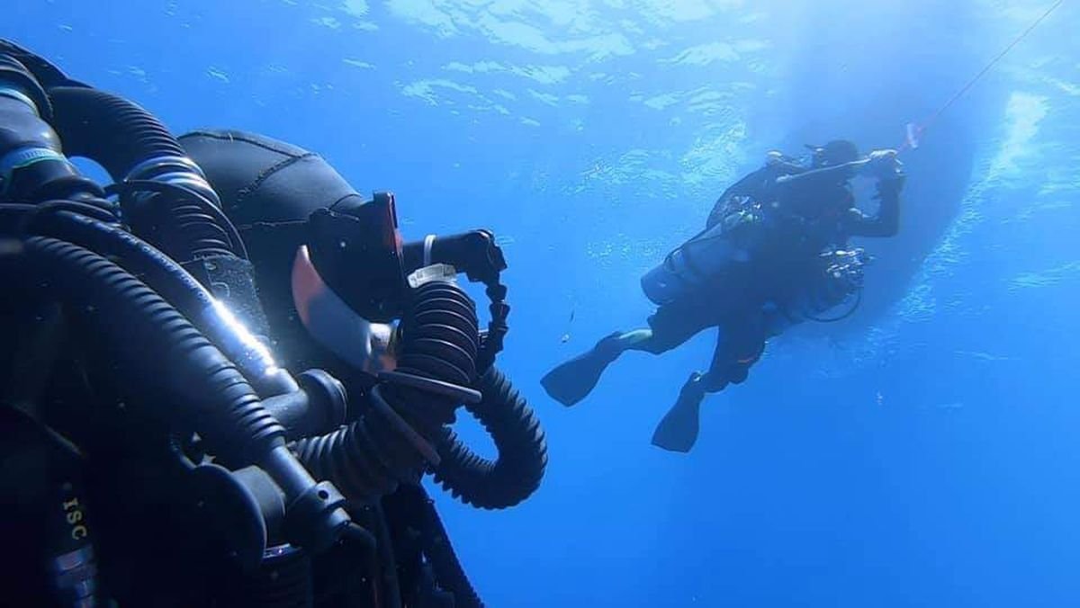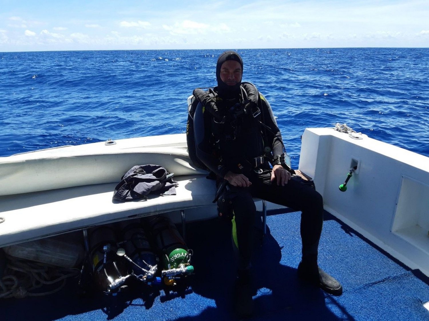 Ao chegar, após o check list final, caímos na água. László novamente usava seu rebreather duplo.
