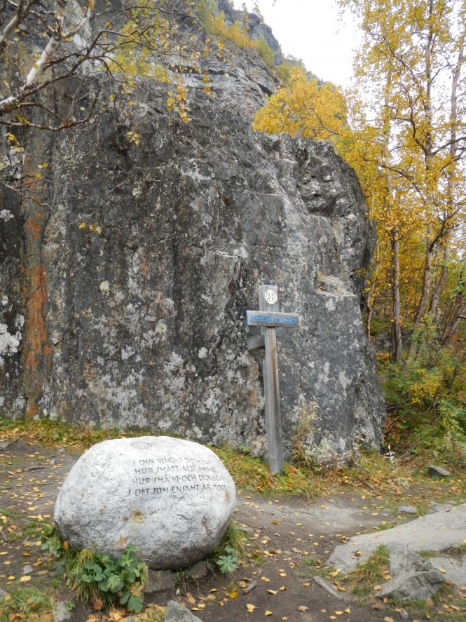 O caminho era bem agradável. Um vento frio derrubava as folhas das bétulas (praticamente a árvore dominante na região) e provocava uma chuva amarela na trilha. Um ponto de meditação bonito ficava entre boulders arrastados pelos glaciares milhares de anos atrás.