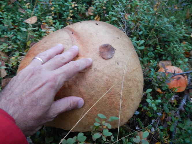 No bosque perto da tenda havia cogumelos enormes. Se fossem comestíveis um era suficiente para uma refeição individual.