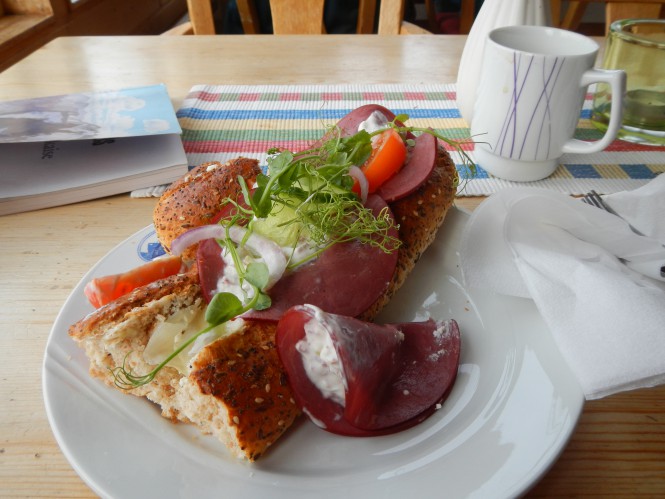 Nikkaluokta é composta por uma dúzia de casas. Vilarejo é elogio. Um pequeno mapa mostrava a localização das casas e o nome dos seus moradores. O restaurante e a loja de lembranças eram muito bonitos e arrumados. Tomei um café e comi uma deliciosa baguete de carne de rena defumada.