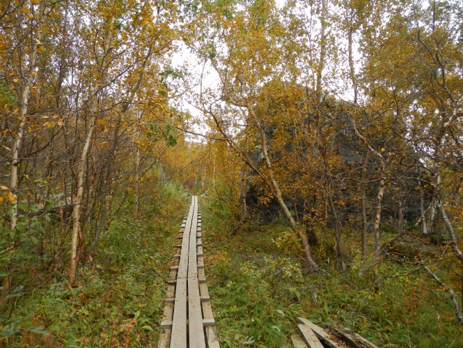 O portal de madeira que marca o início da Kungsleden, em Abisko, está esperando por vocês!