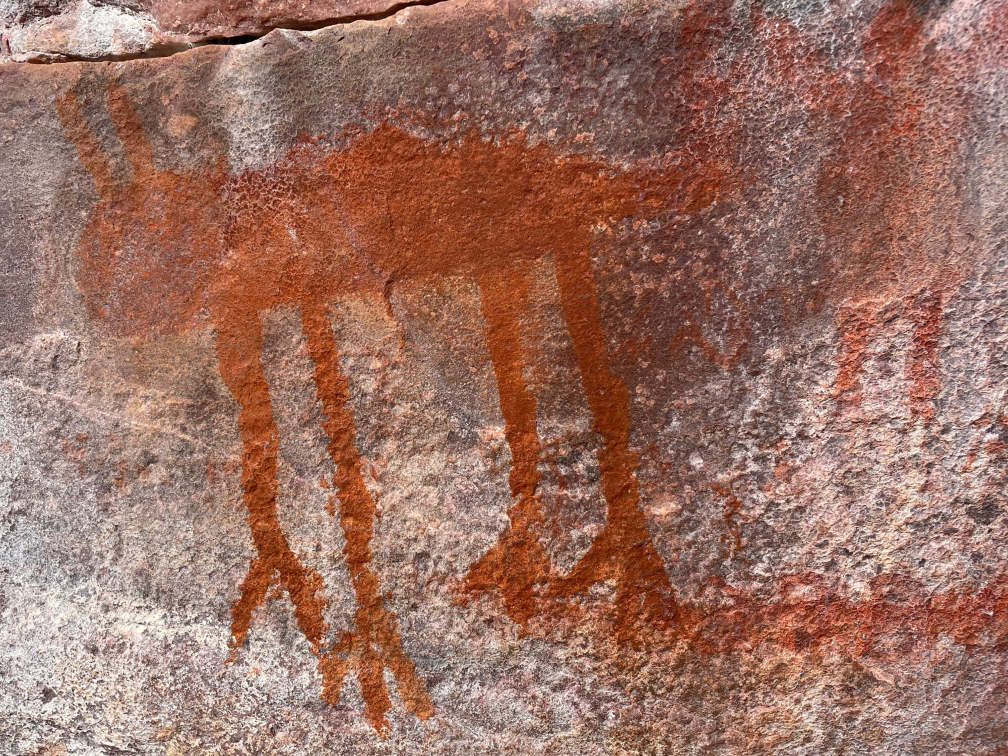 Pinturas bonitas e bem conservadas. Tiramos boas fotos. Várias representações de animais e figuras geométricas.