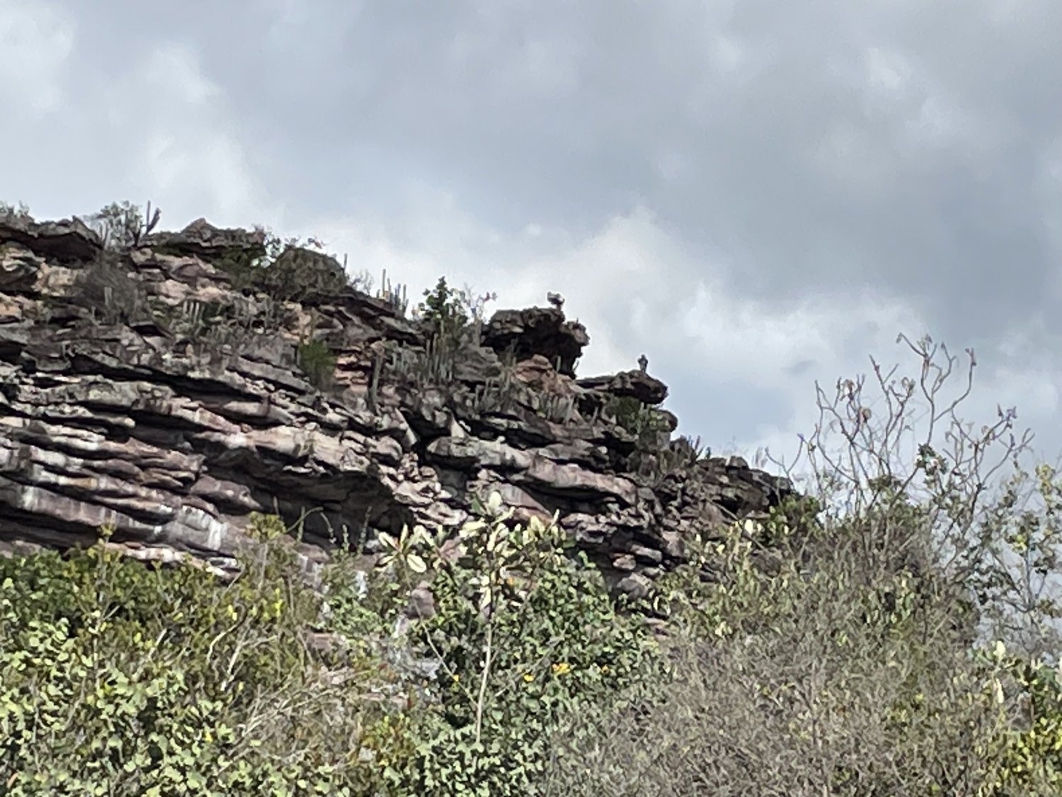 Rumamos para este empedrado porque ali havia pinturas rupestres. Os 3 urubus saíram voando.