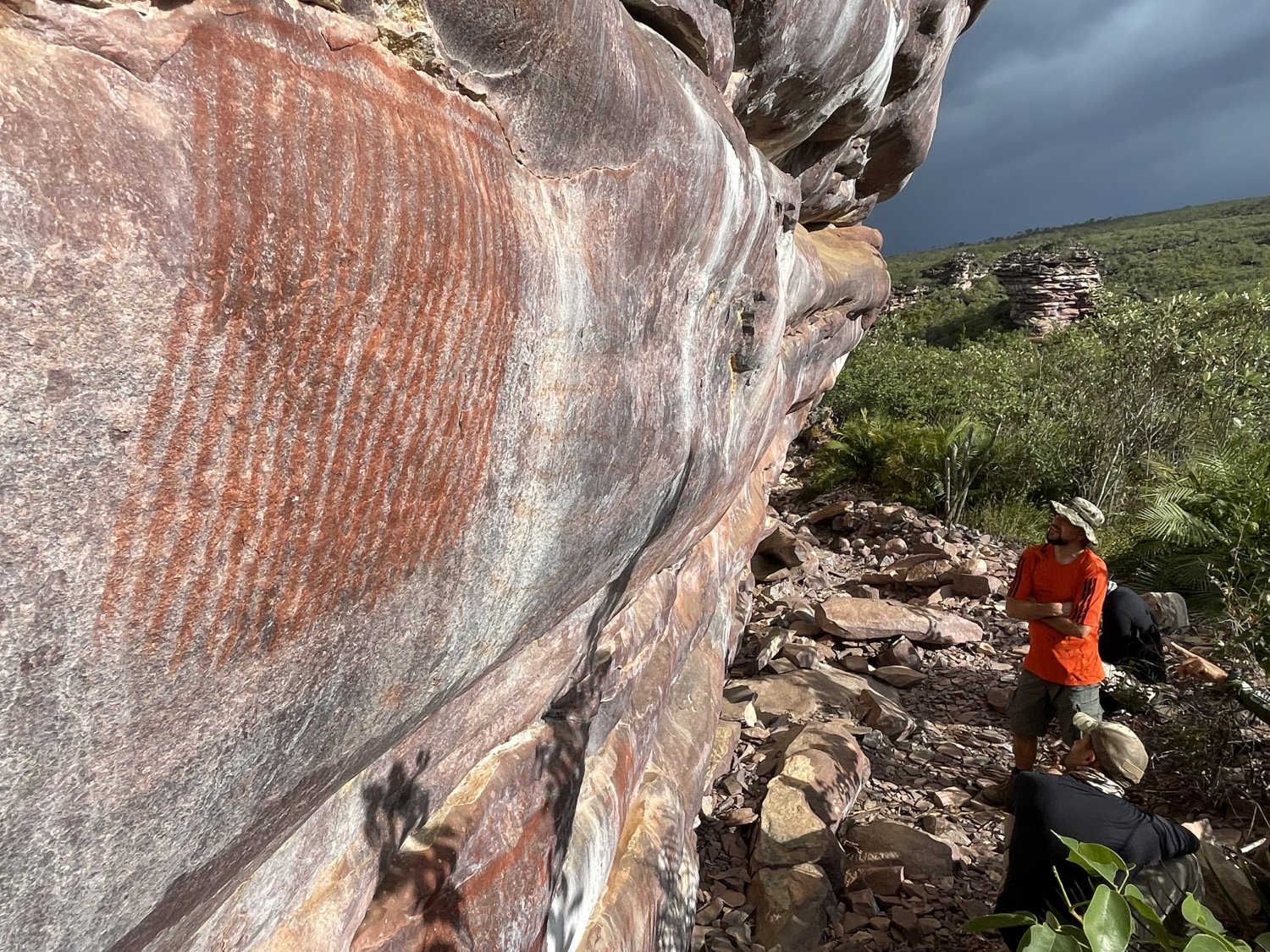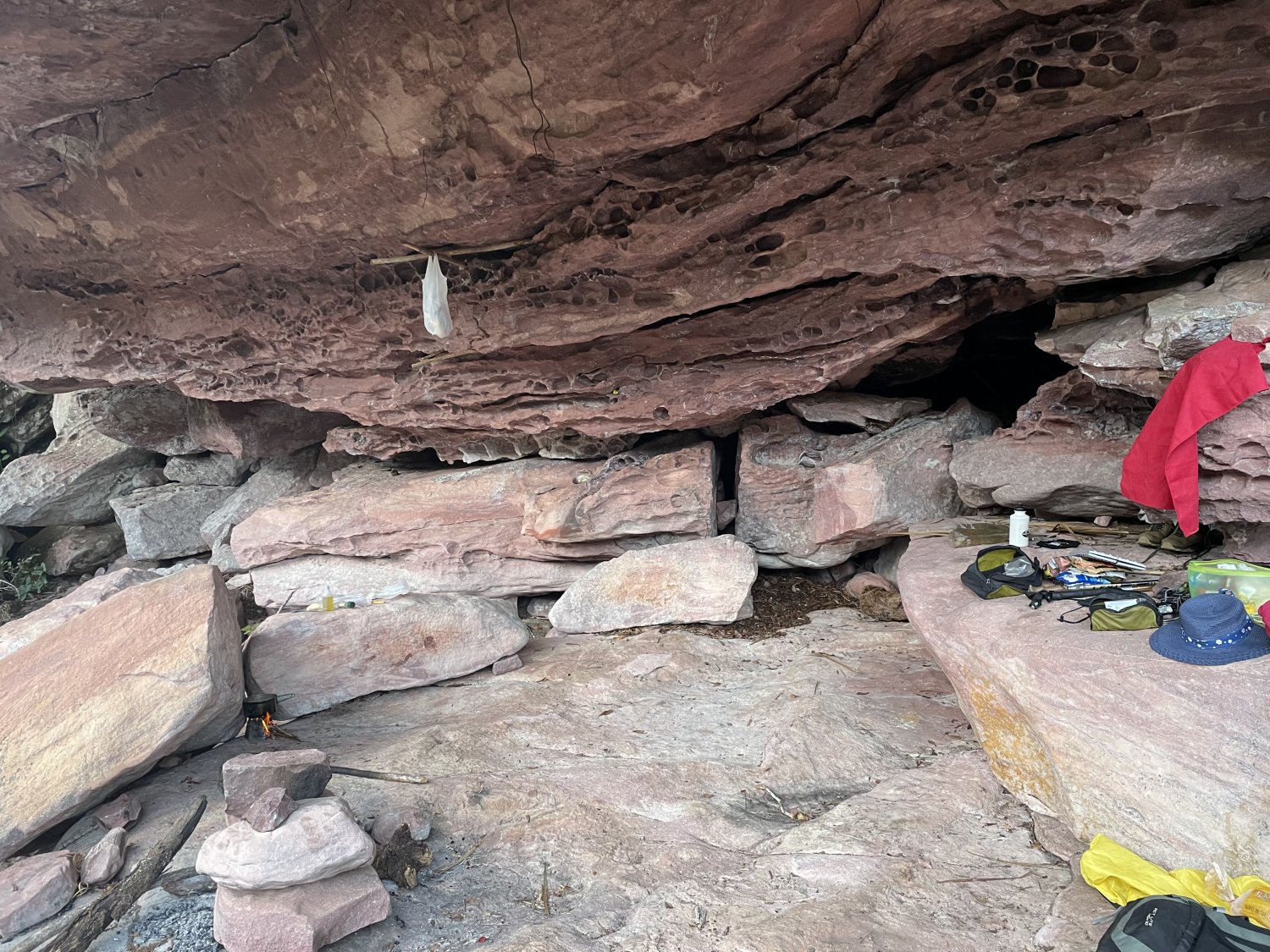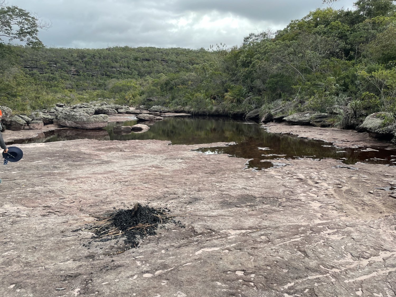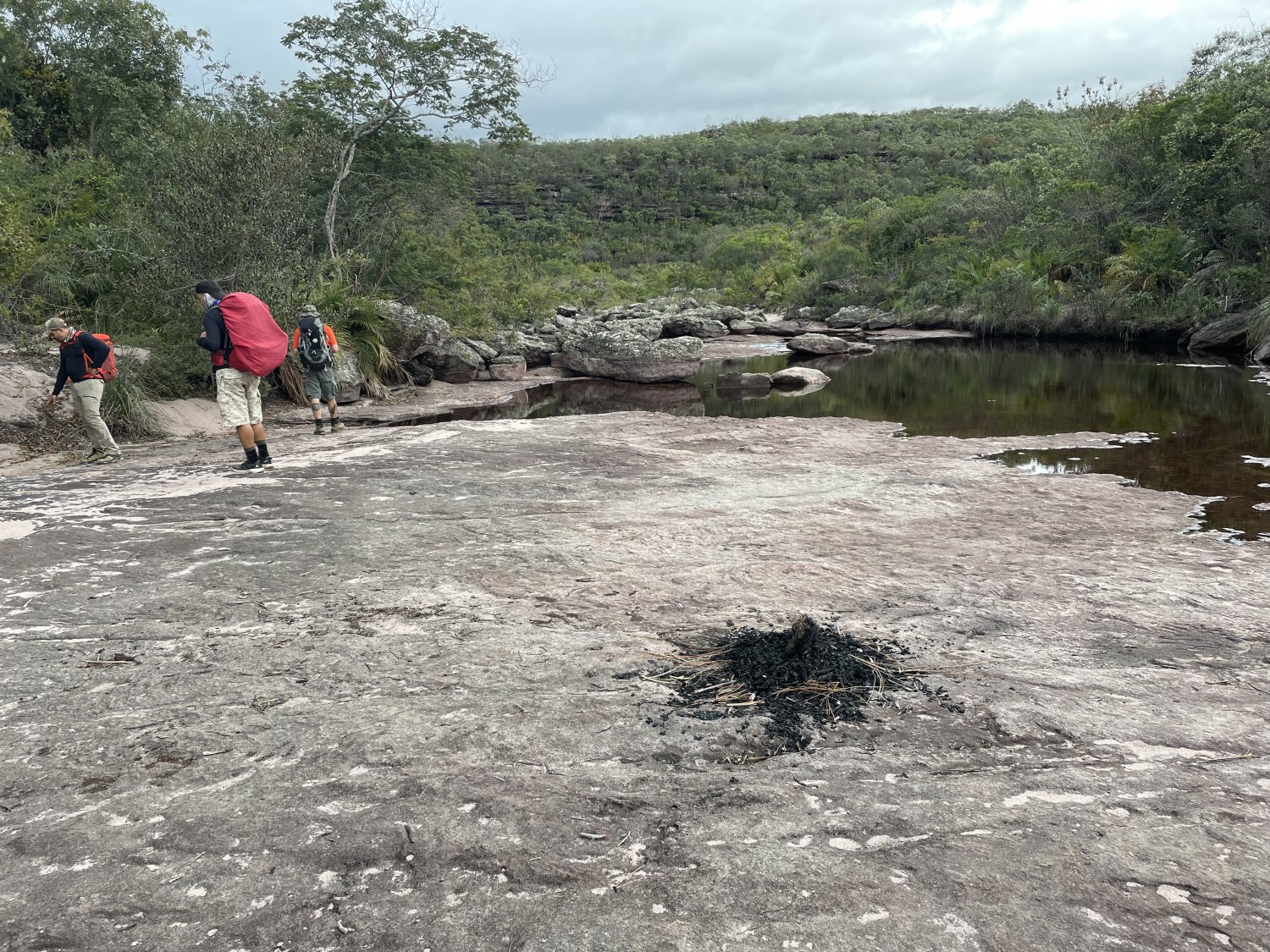 Local do acampamento deles. Observe no centro do lajeado os restos da fogueira.